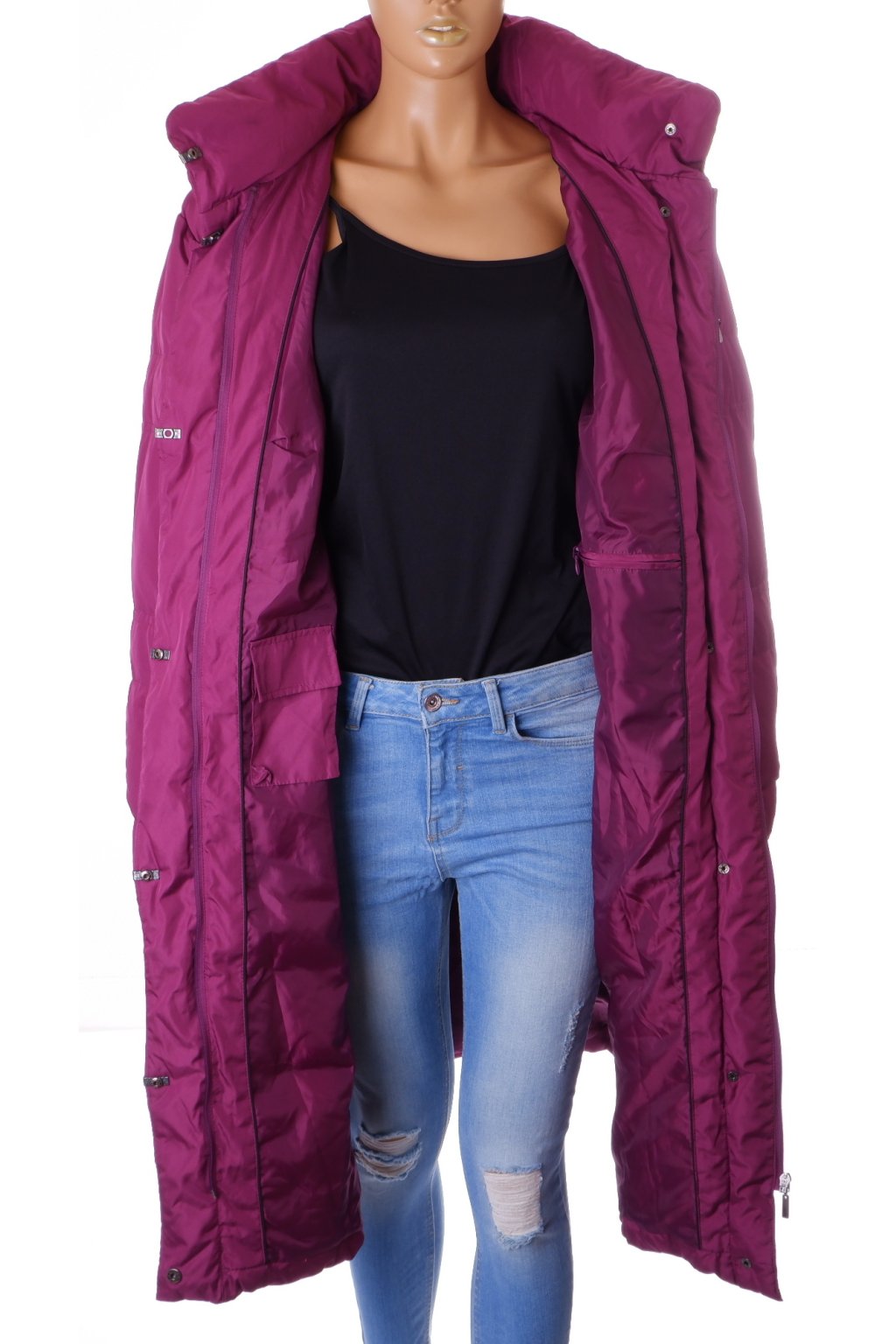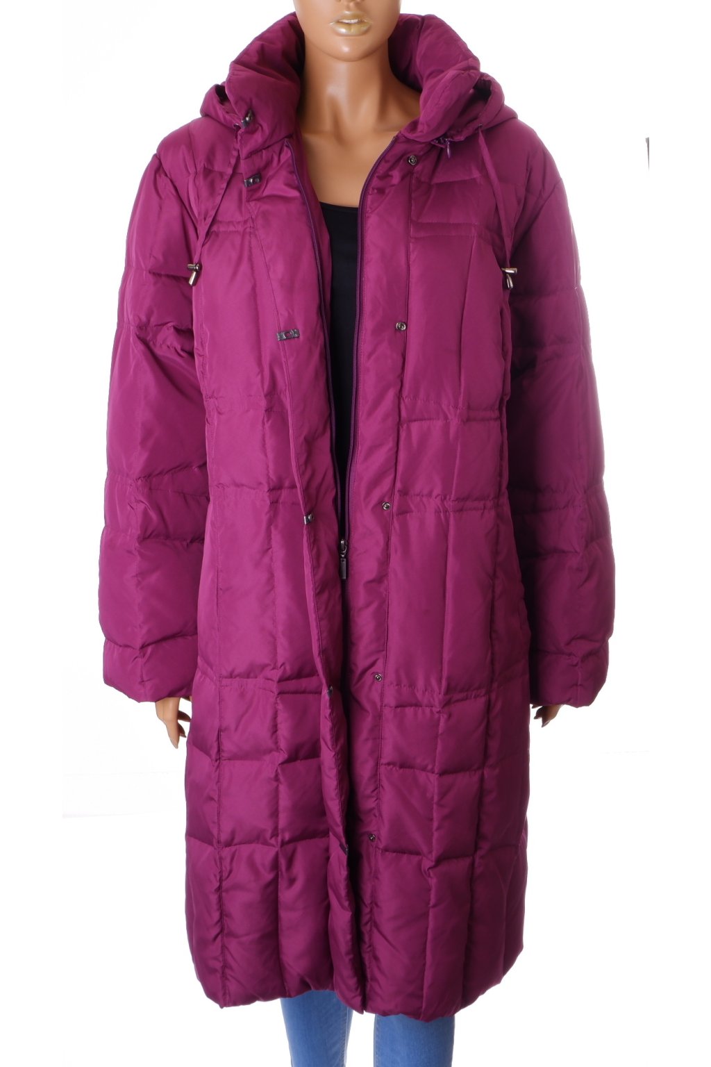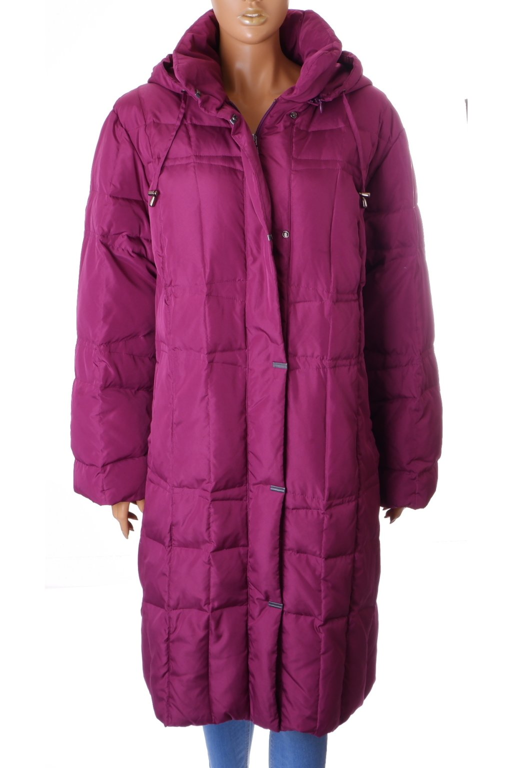 Bunda dlouhá Mona vel.XXL fialová prachové peří