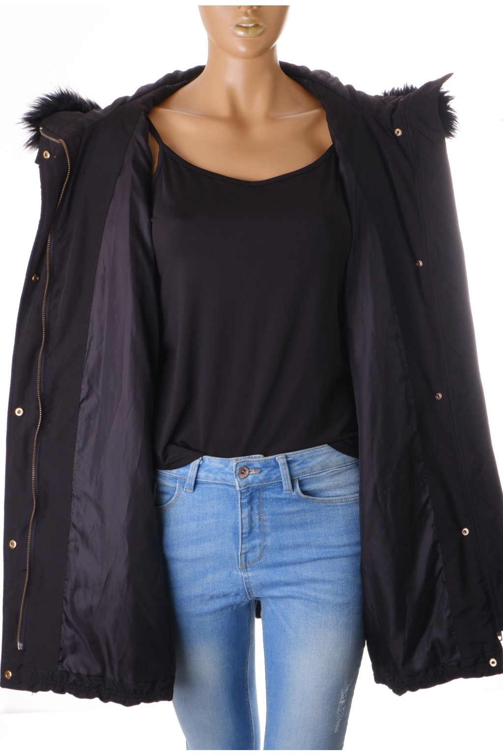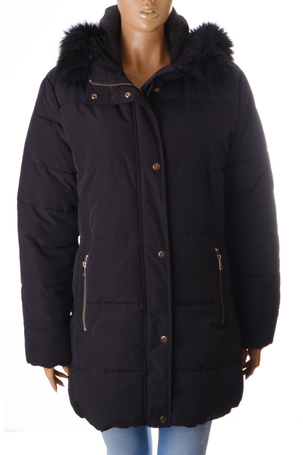 Bunda H&M zimní černá s umělým kožíškem vel. 48 / XL
