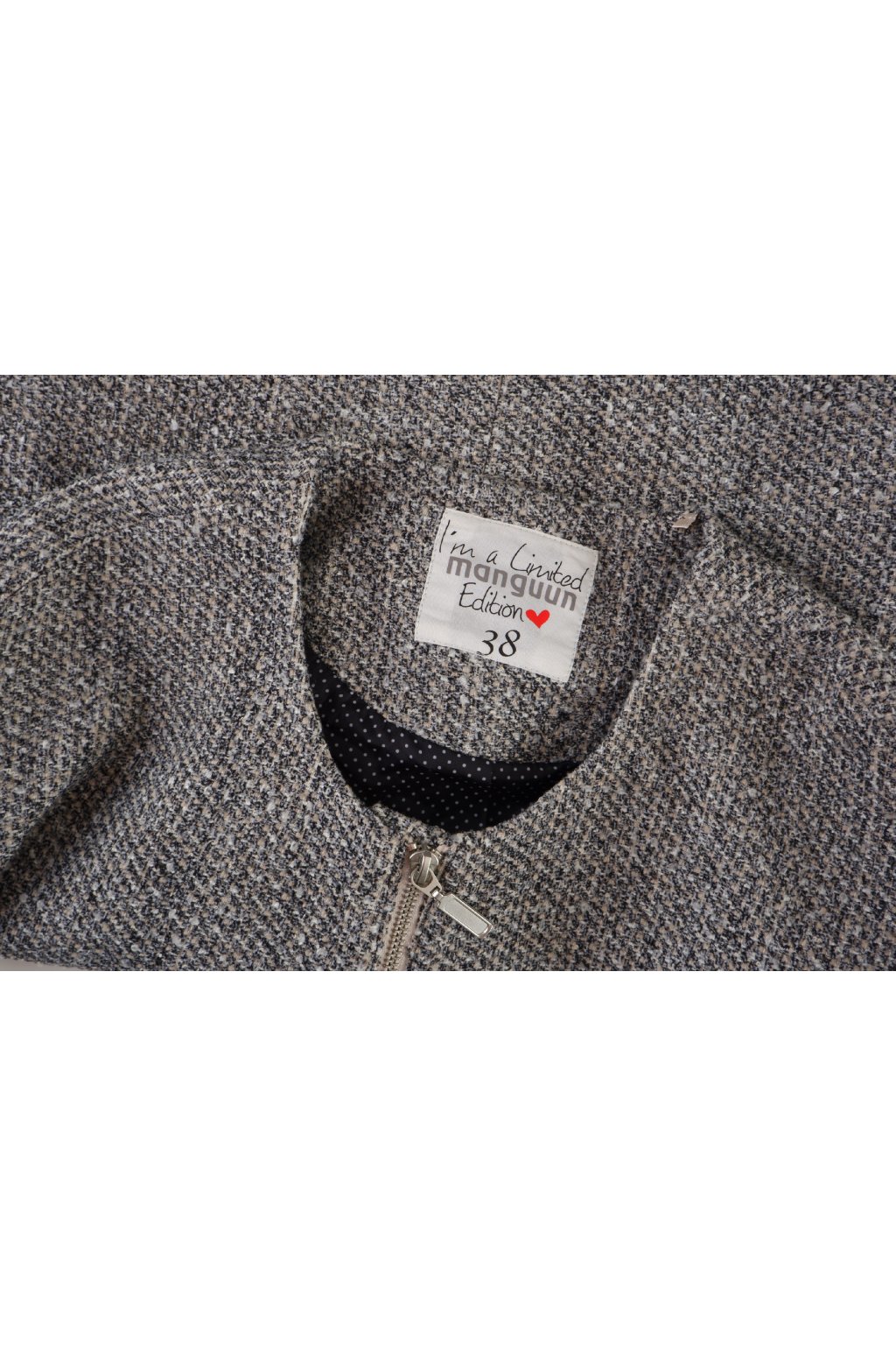 Bunda Manguun šedá melanž na zip 3% vlna vel. 38 / S
