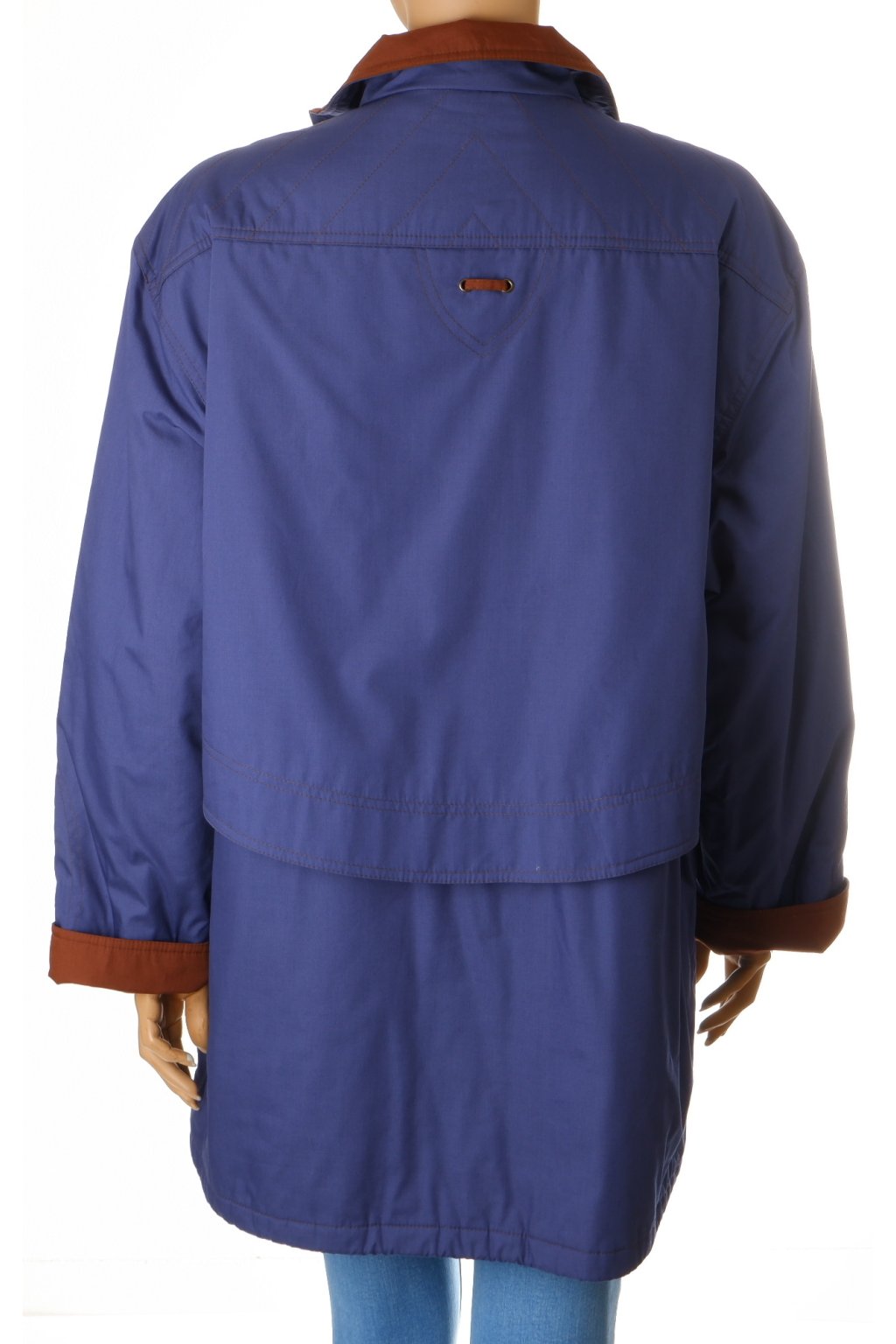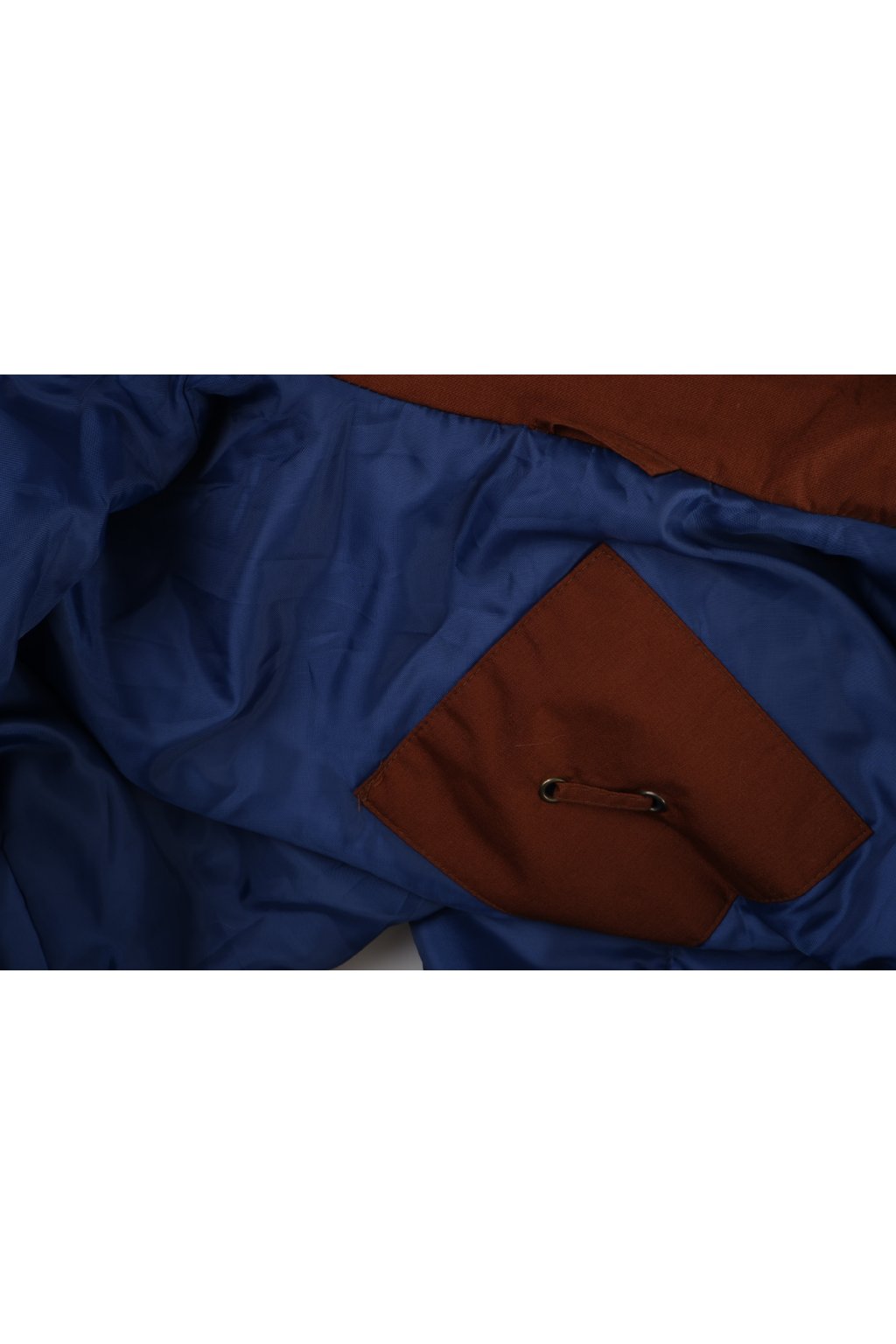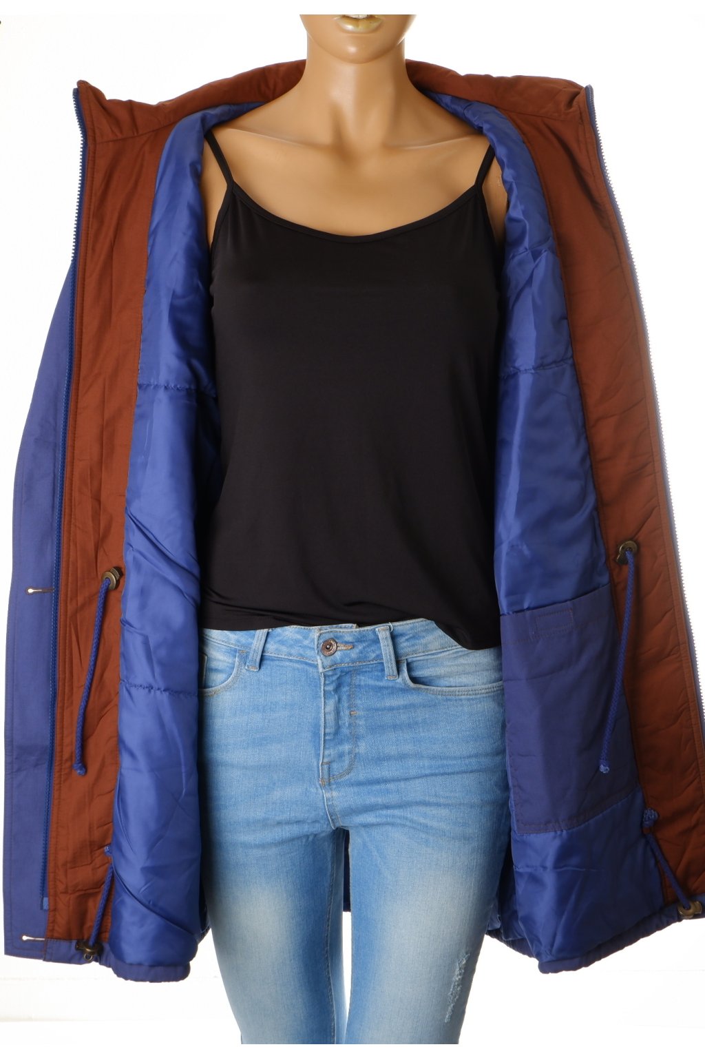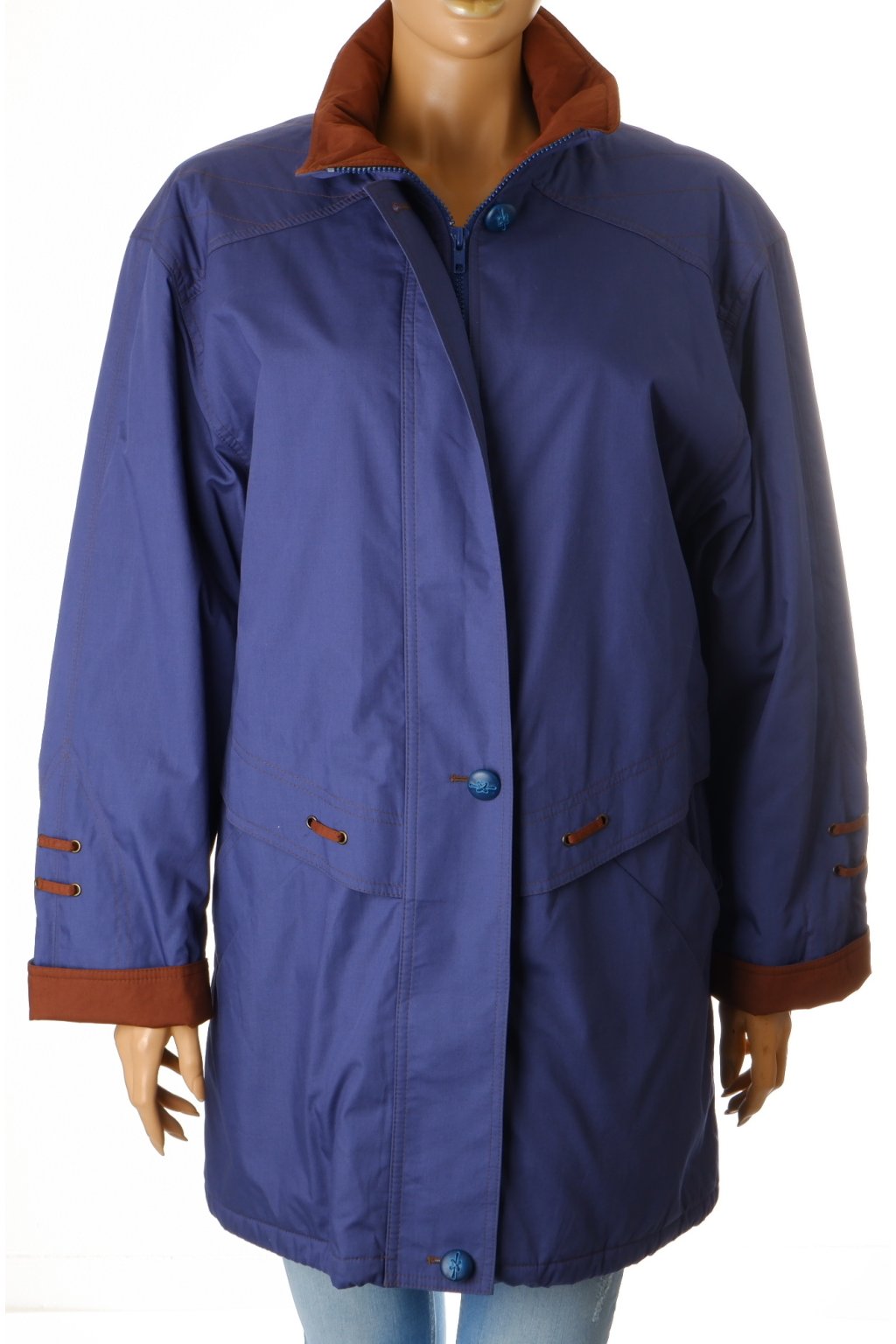 Bunda modrá mírně zateplená modrá s hnědým lemováním vel. M