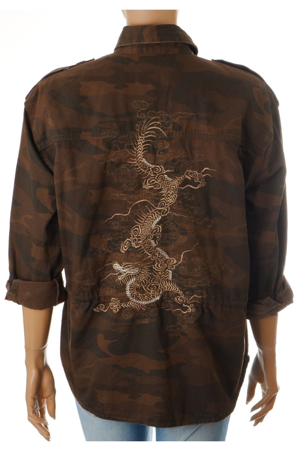 Bunda Next riflová army styl s vyšívaným zlatým drakem na zádech vel. M / uk 14