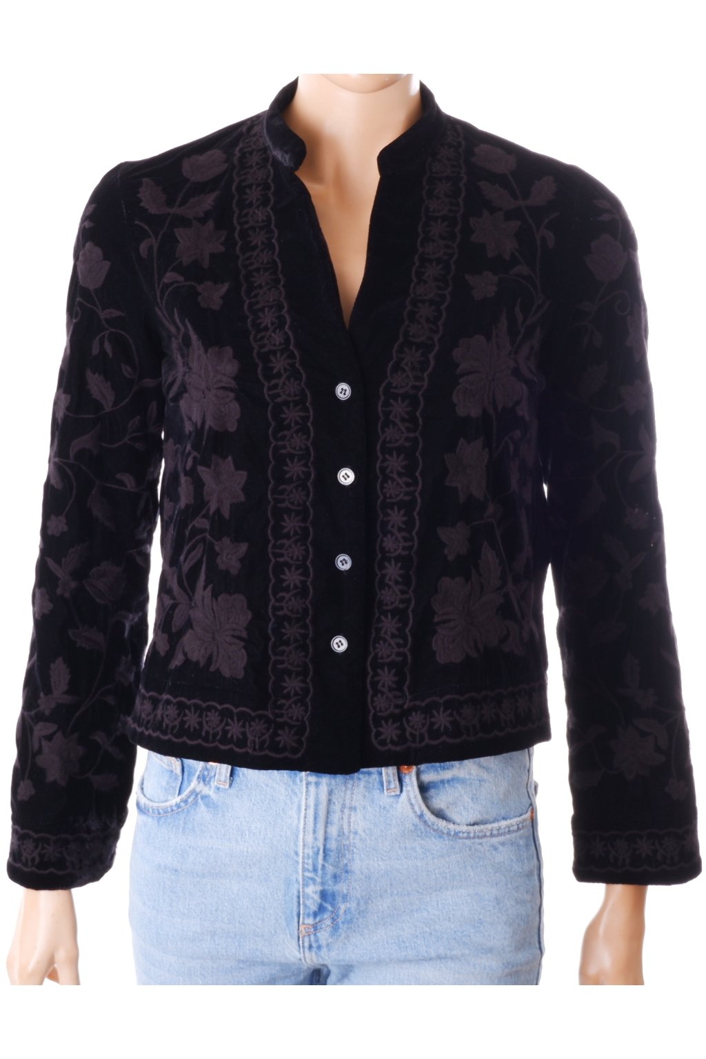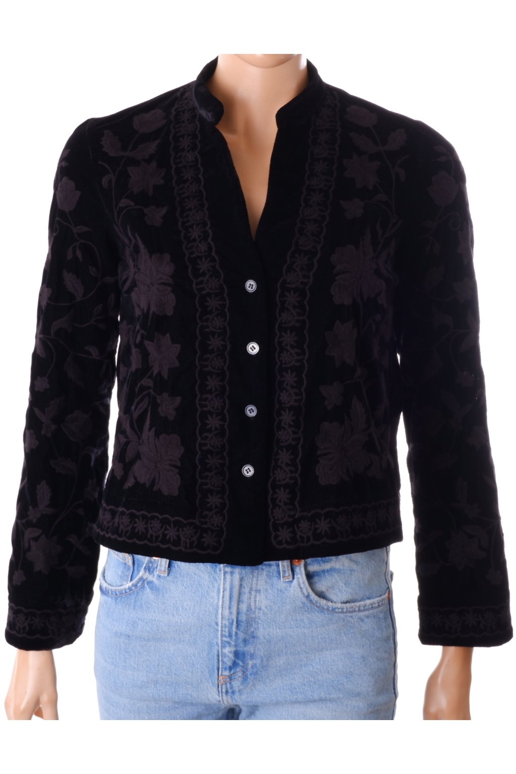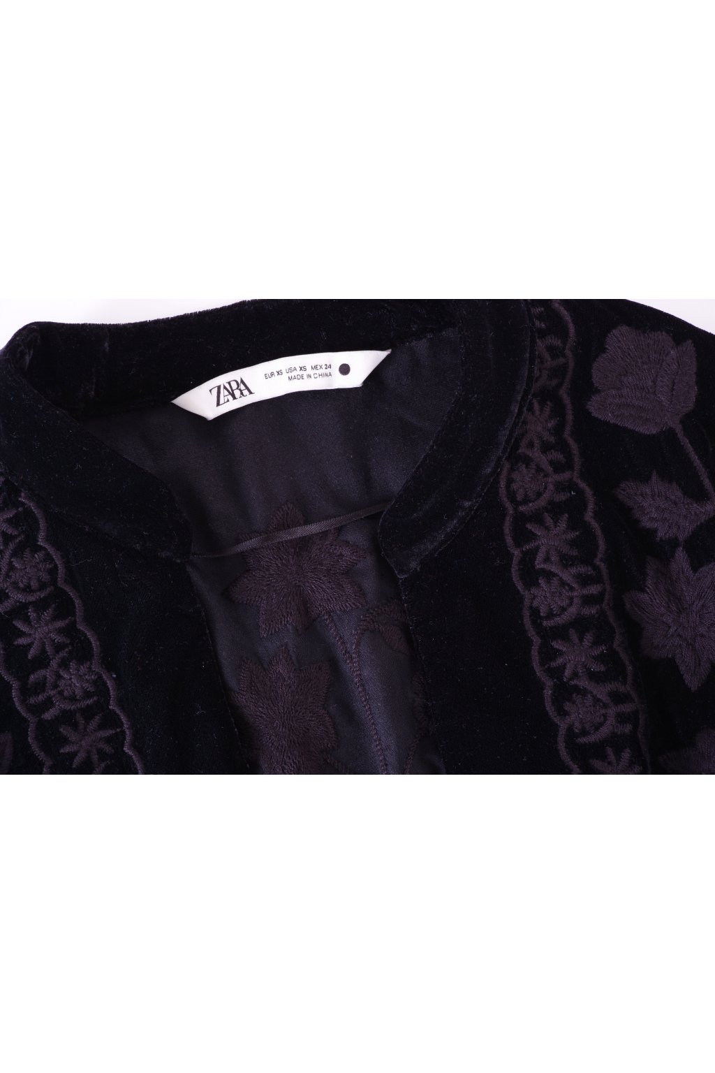 Bunda Zara lehká černý samet s vyšívaným vzorem vel. XS