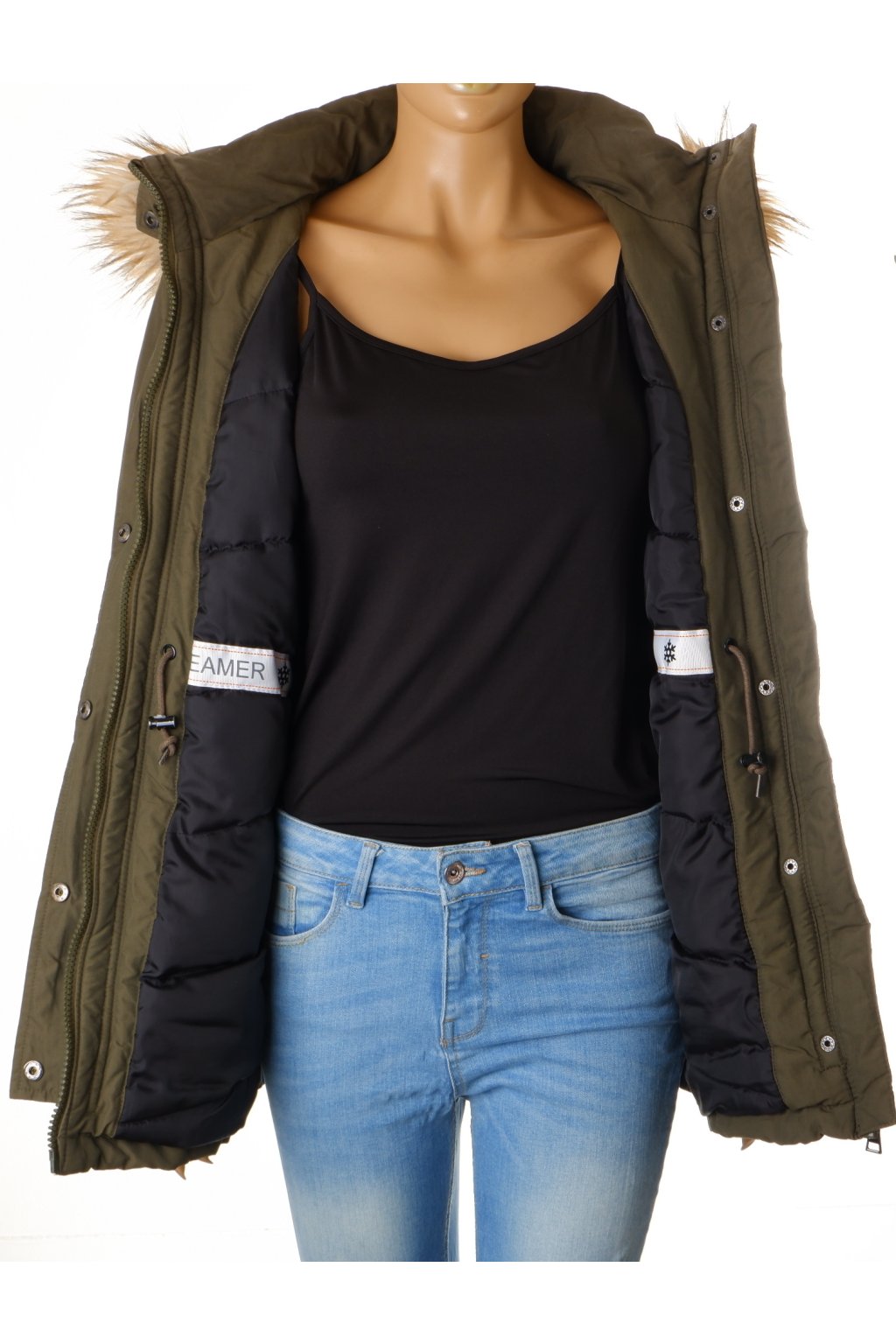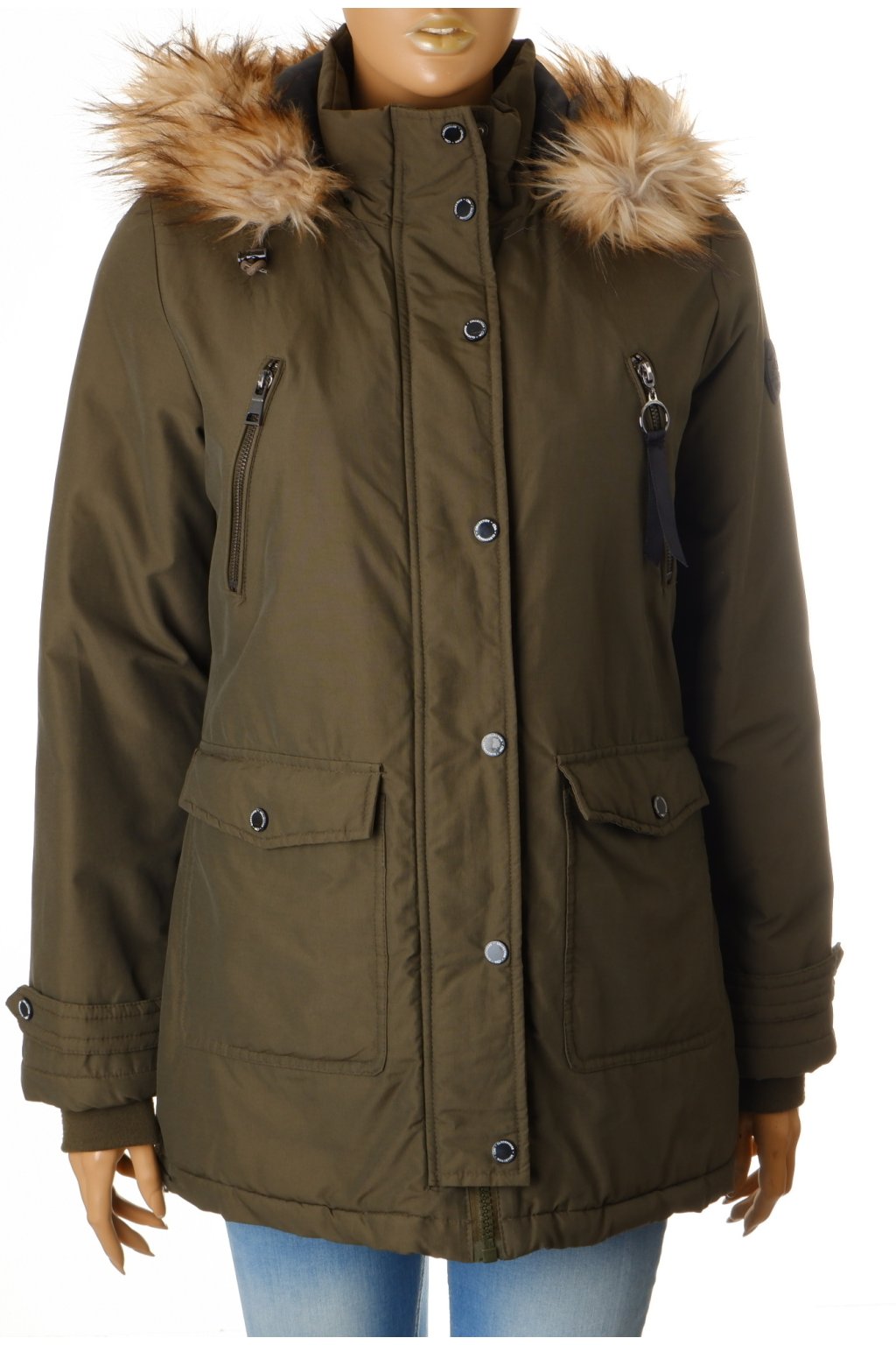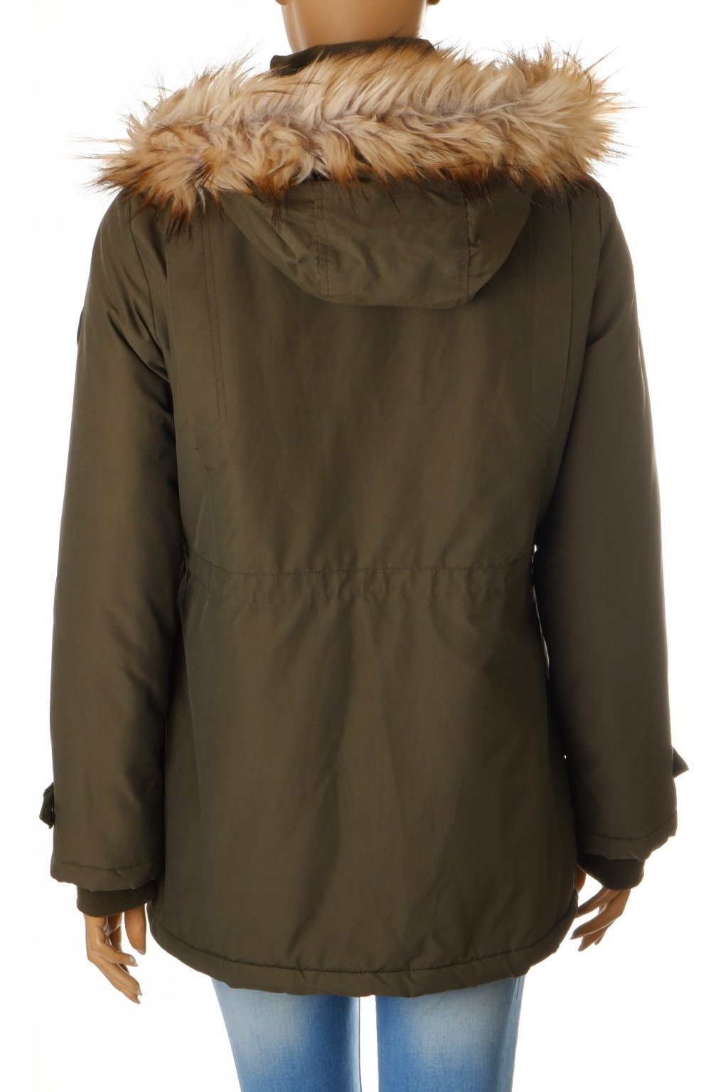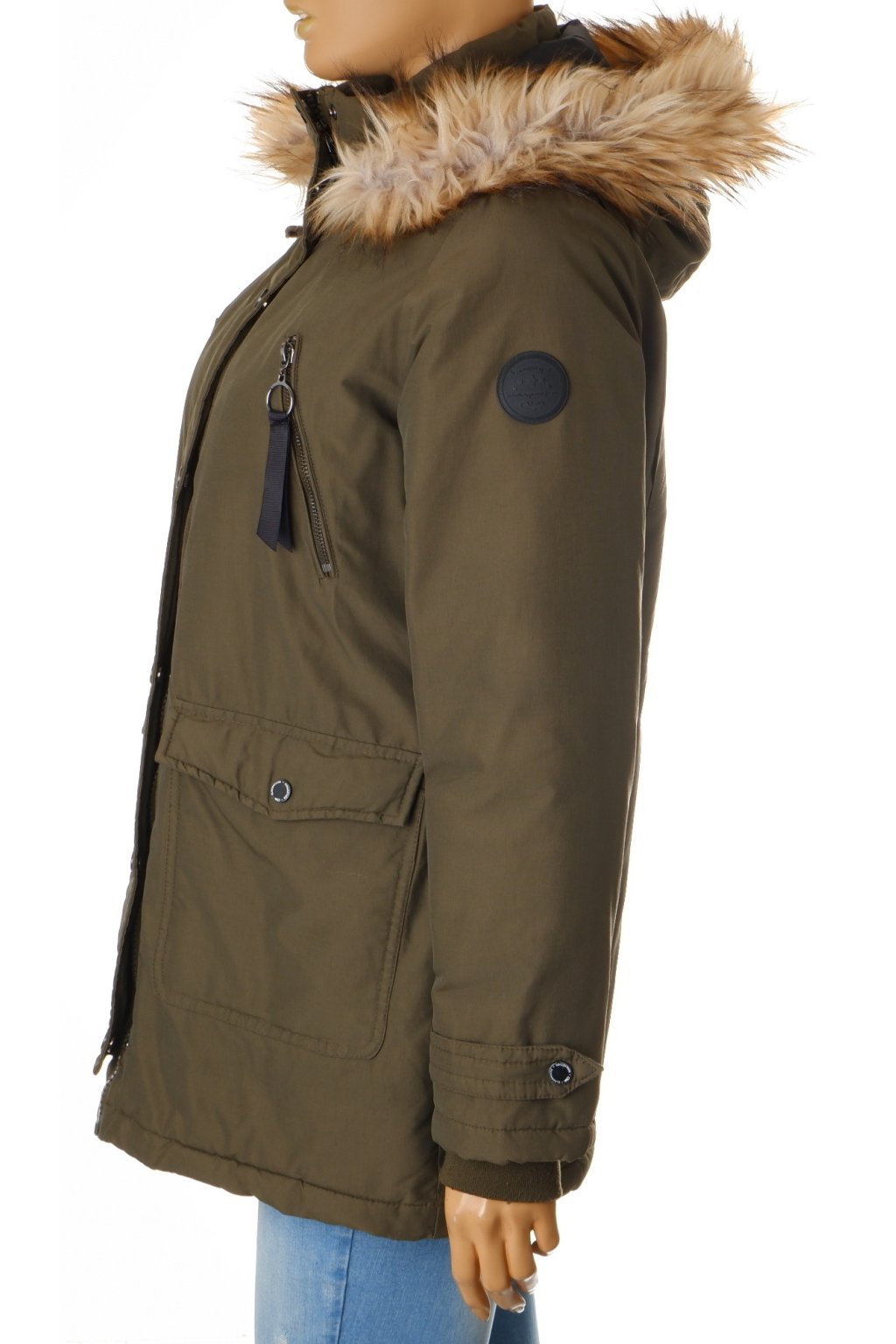 Bunda zimní teplá C&A zelená s kožíškem na kapuci vel S/38