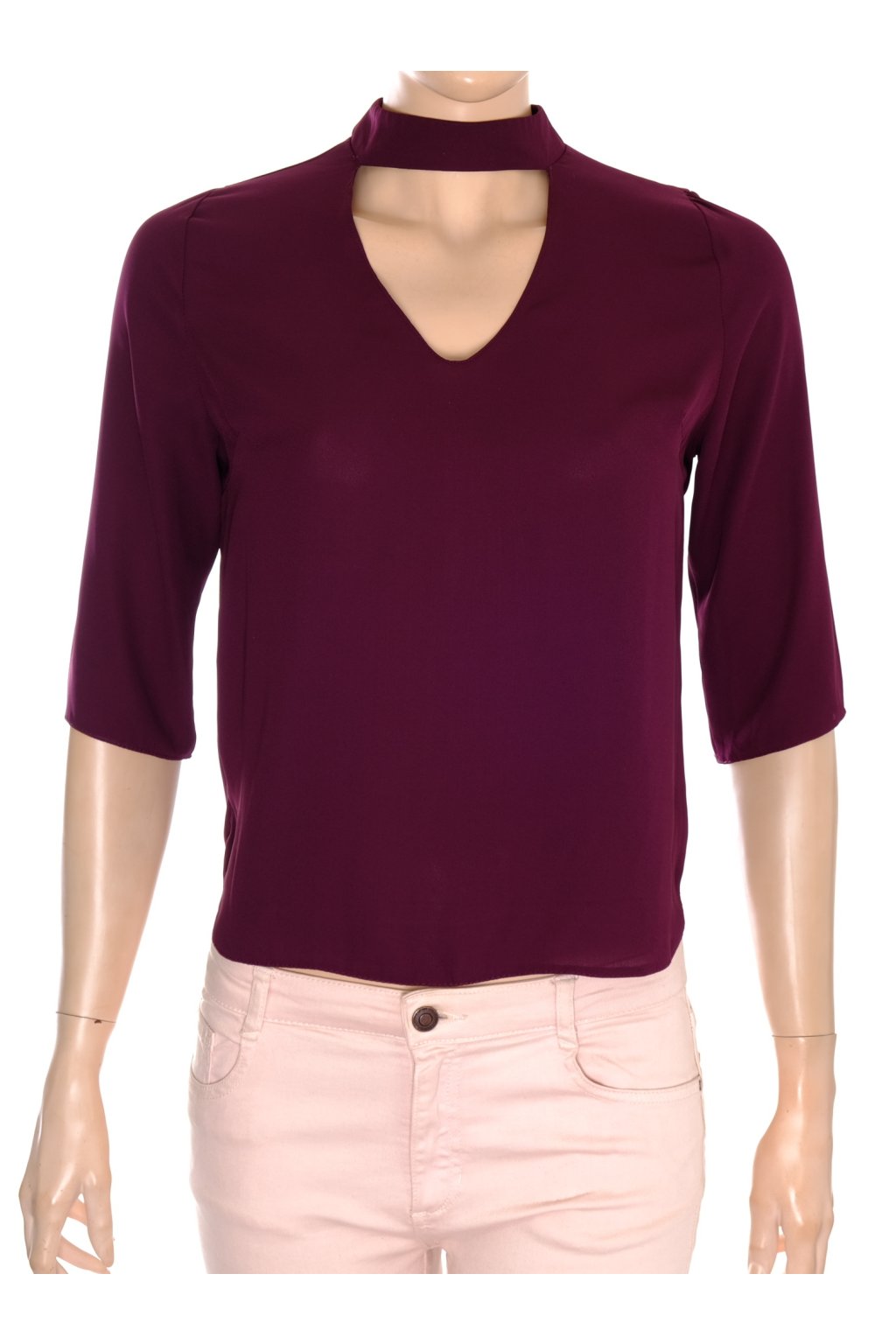 Halenka Atmosphere vínová s výstřihem a stojáčkem vel S