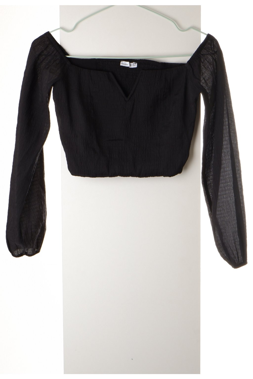 Halenka Bershka černá crop top vzadu žabičkování vel. XS
