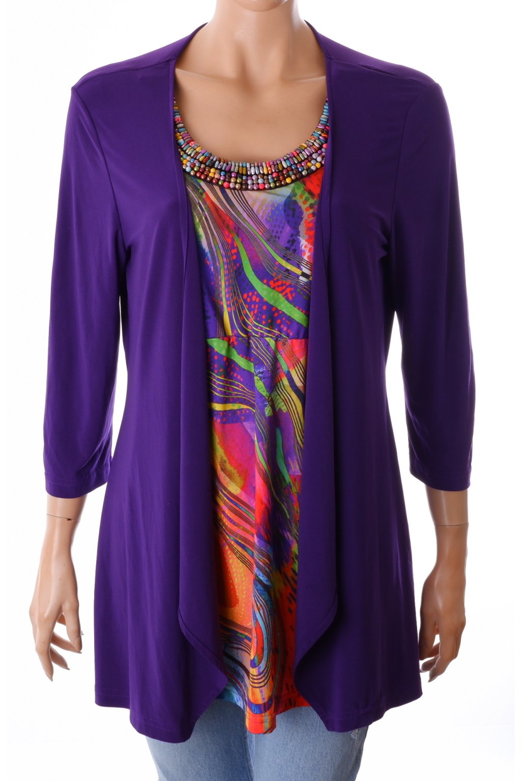Halenka ERFO barevná s dřevěnými perličkami a fialovým přehozem vel. 42 / M