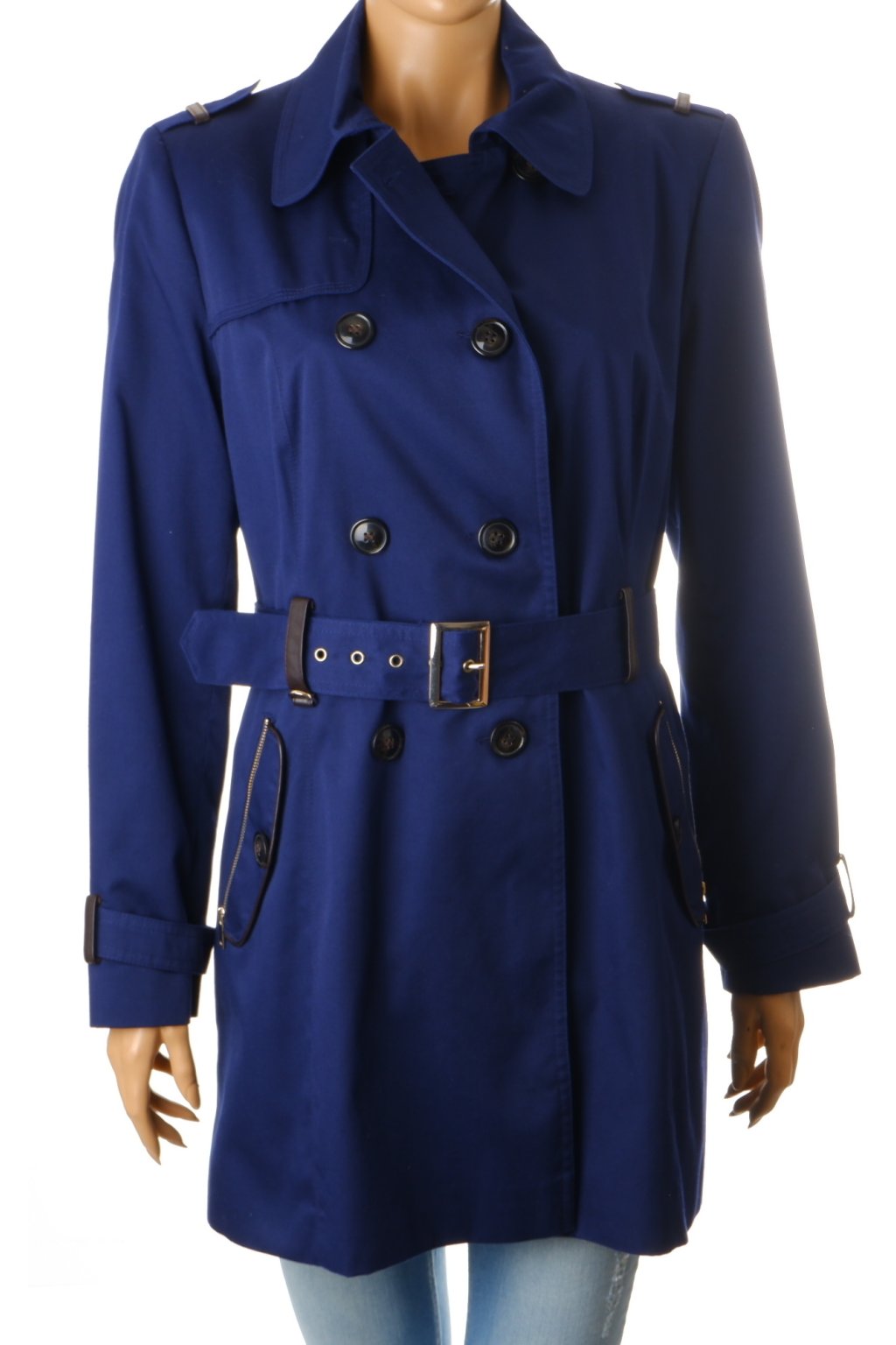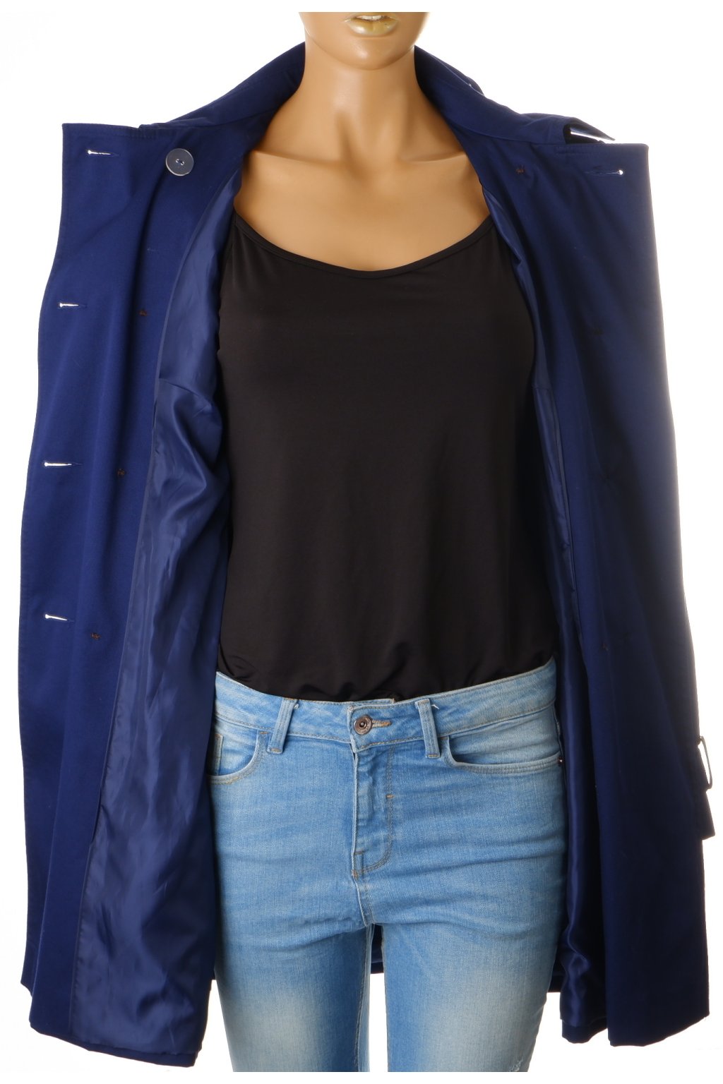 Kabát F&F lehký modrý s koženkovými detaily vel. 42 / uk 14 / M