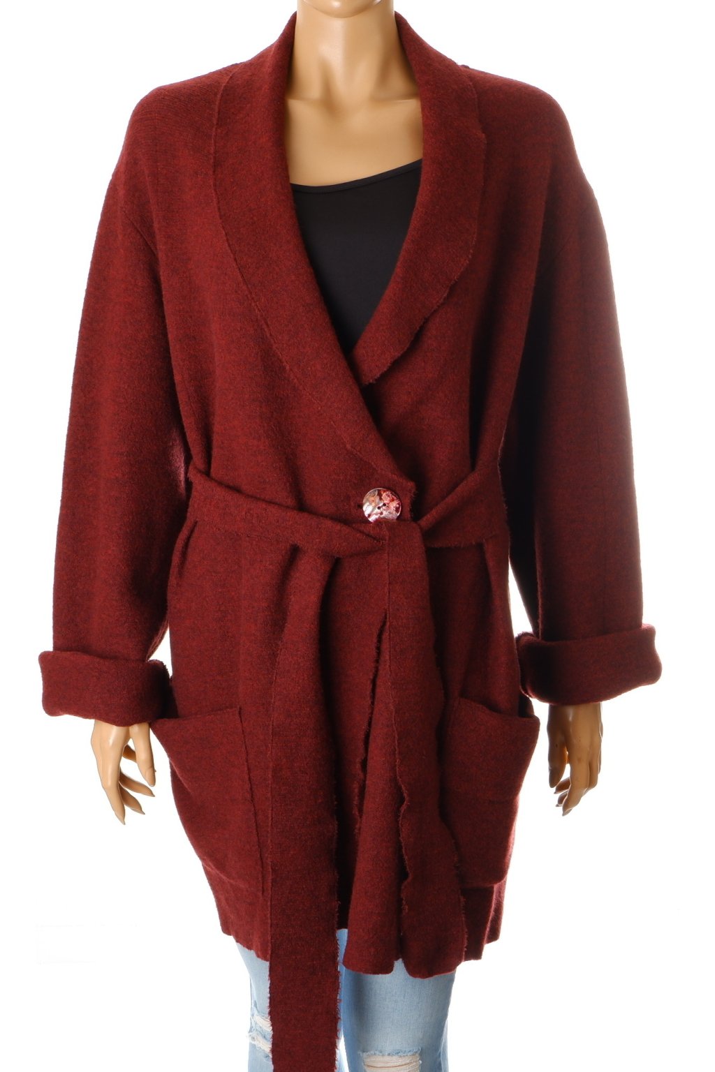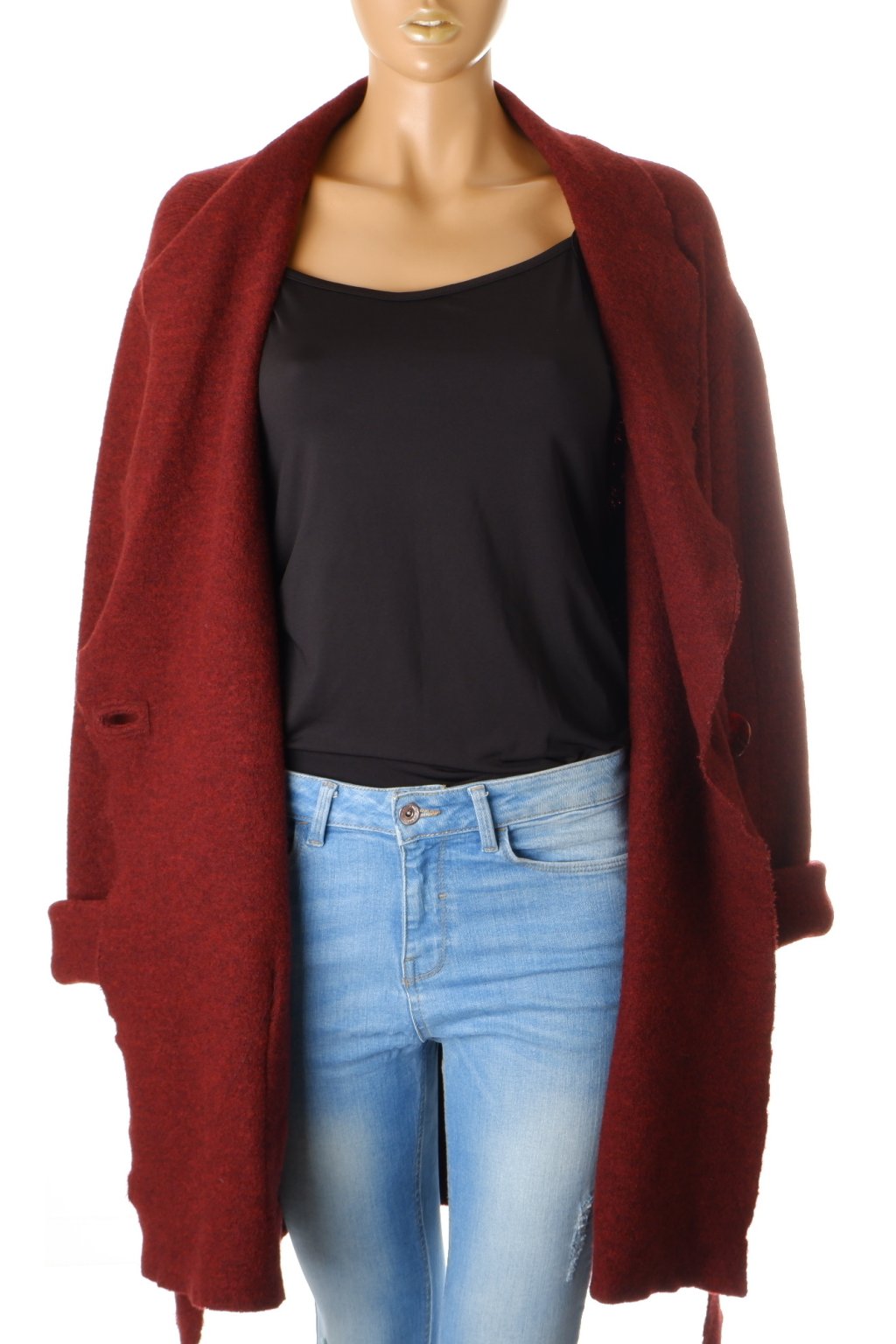 Kabát Mogendorf vínový s opaskem kardigan vel. XL - XXL