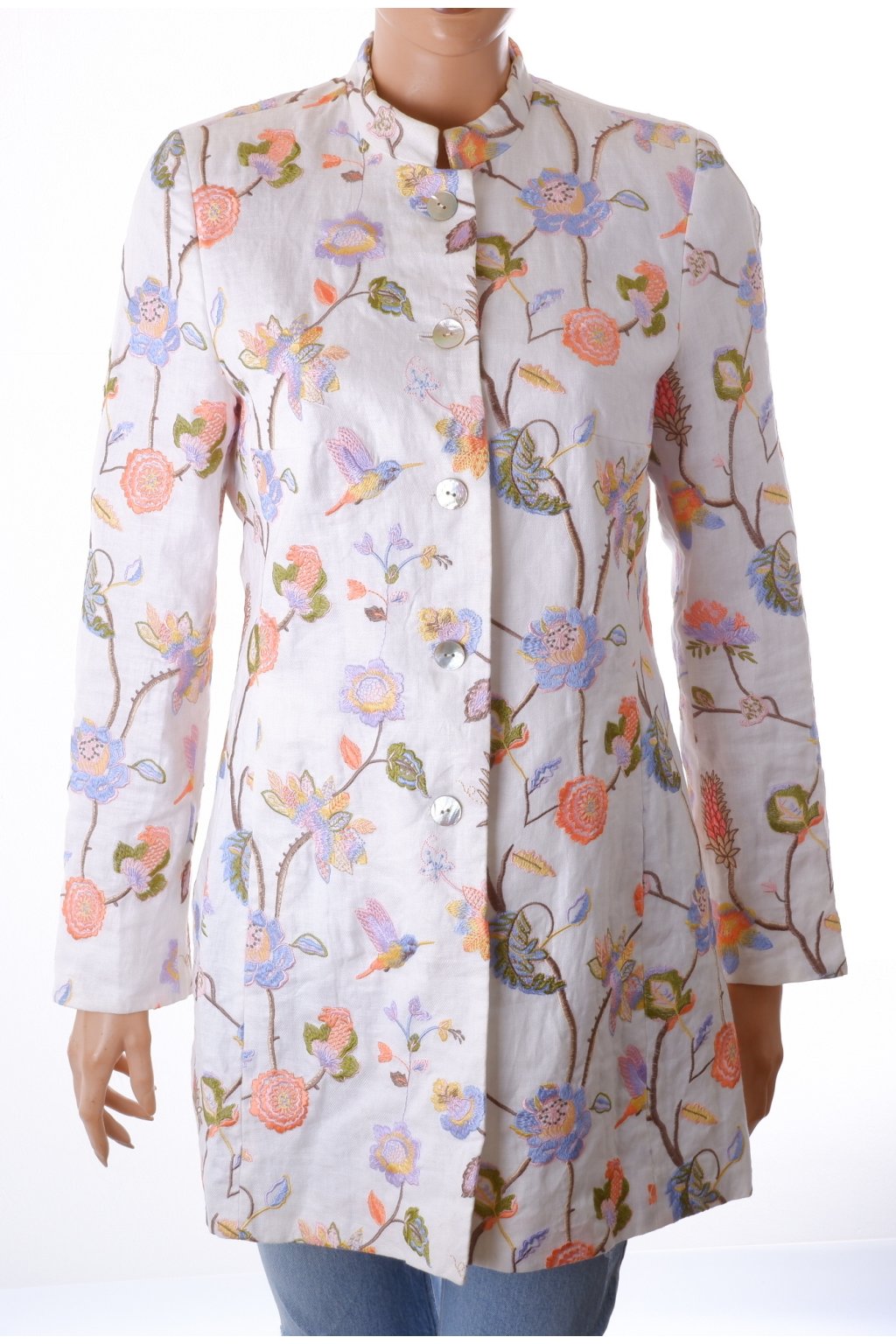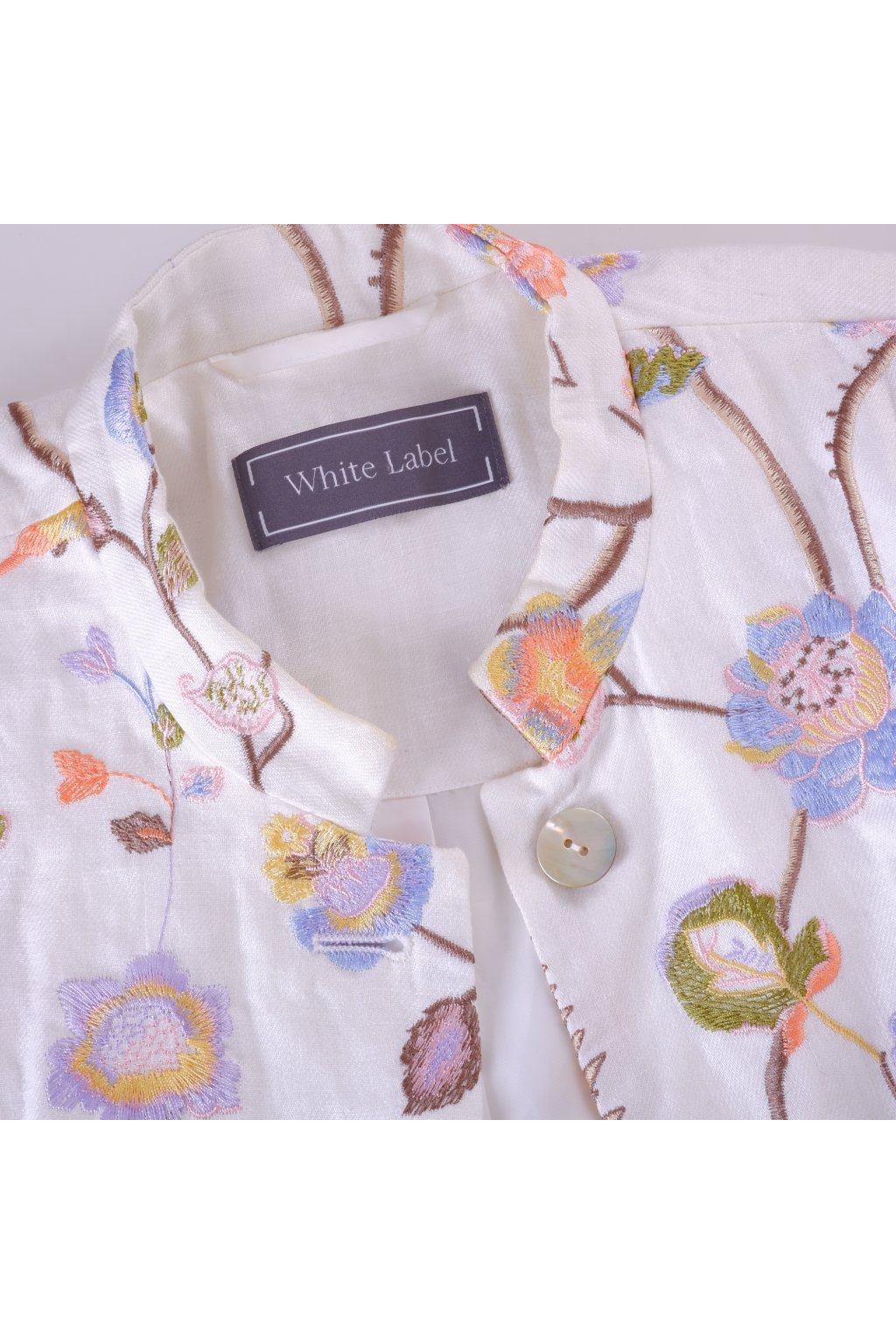 Kabát White Label bílý s vyšívaným barevným vzorem 100% len vel. M / 40 / uk 14