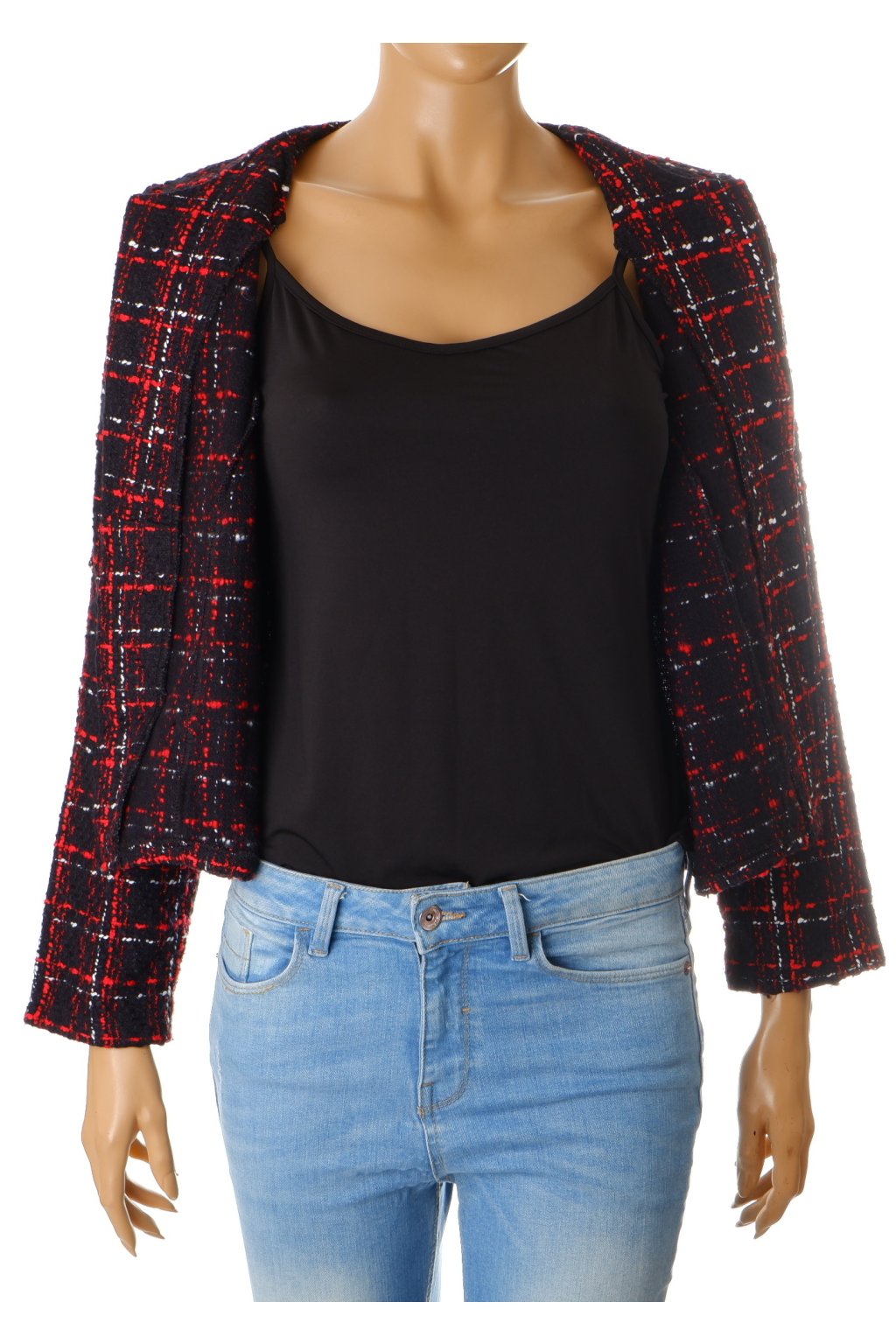 Kabátek Na Moda černo červený vzorovaný vel. S
