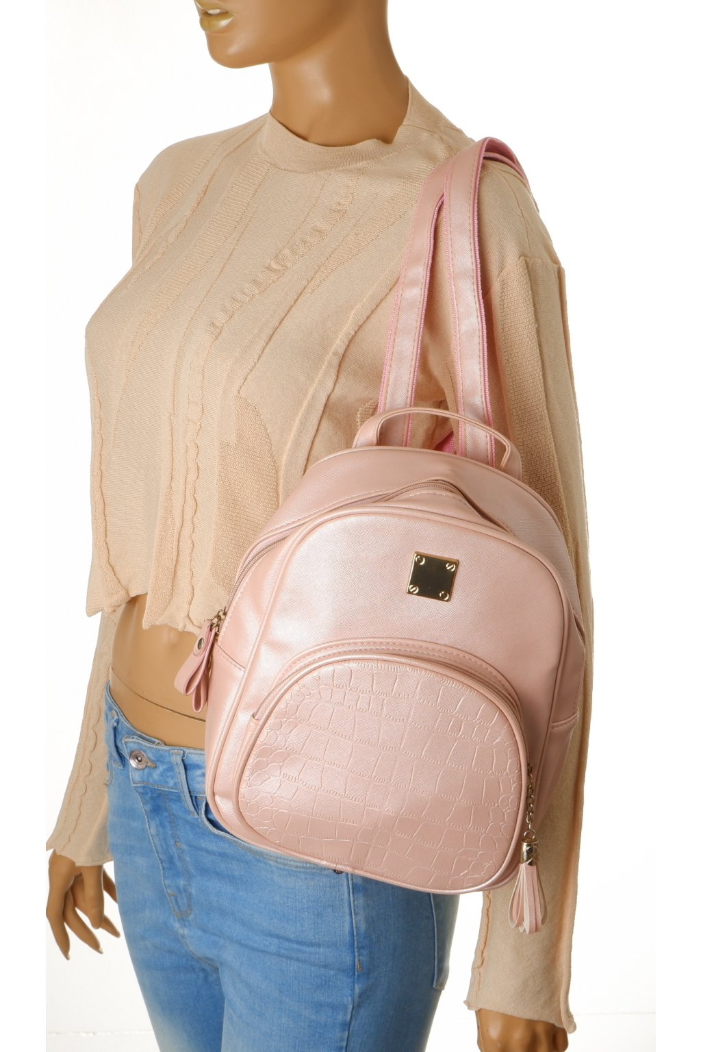 Kabelka batoh dámský malý růžový lesklý 23x28 cm