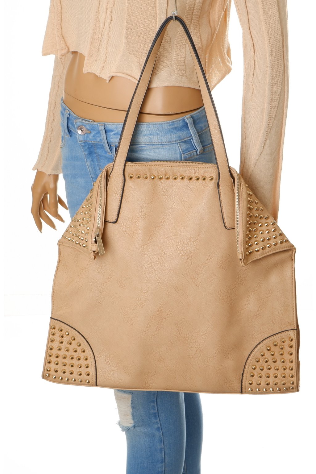 Kabelka David Jones velká shopper béžová s kovovými cvočky 43x38 cm