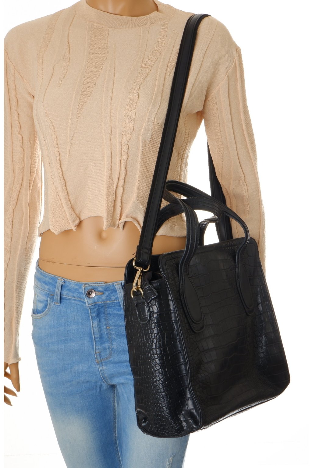 Kabelka Jenny Fairy černá se strukturou krokodýlí kůže syntetika 30x31 cm