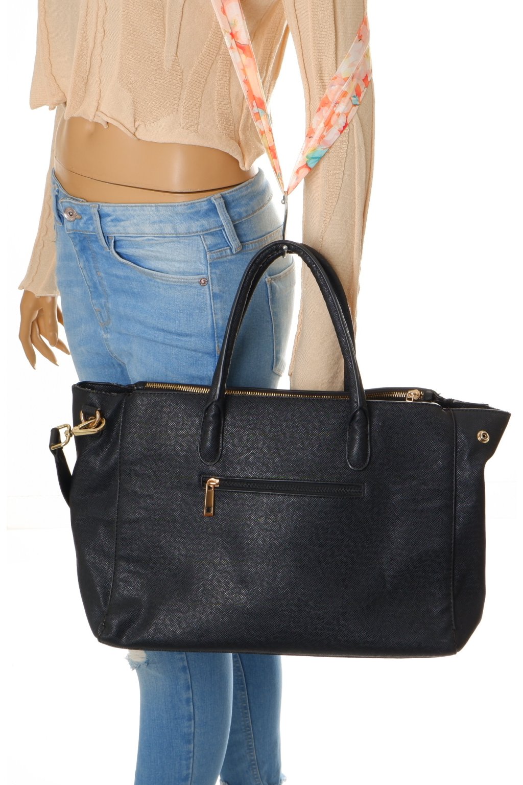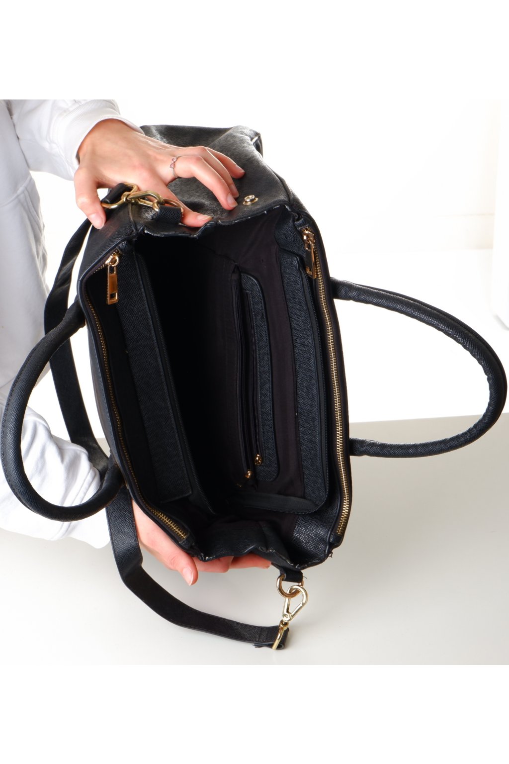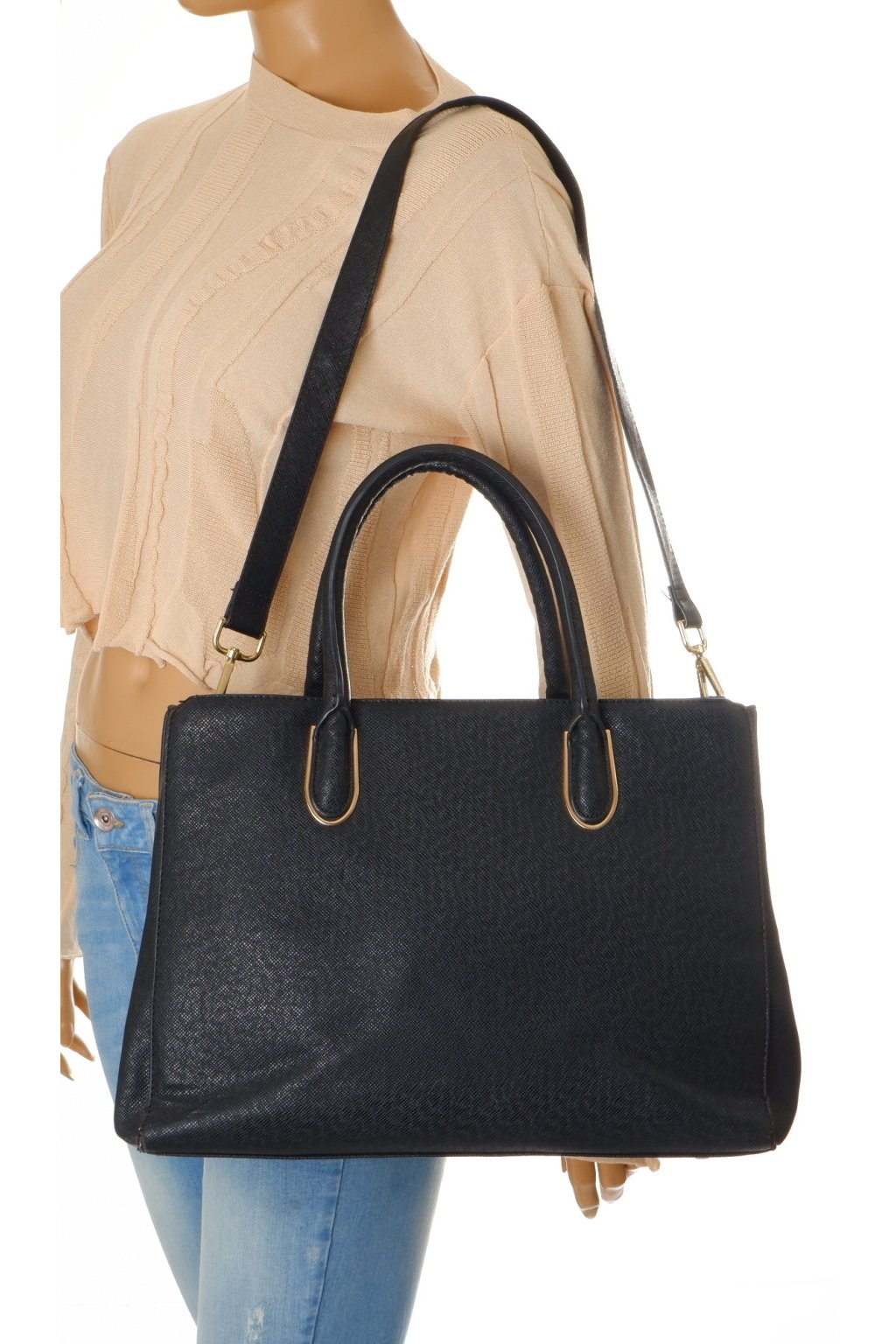 Kabelka velká černá se zlatou ozdobou 39x29 cm