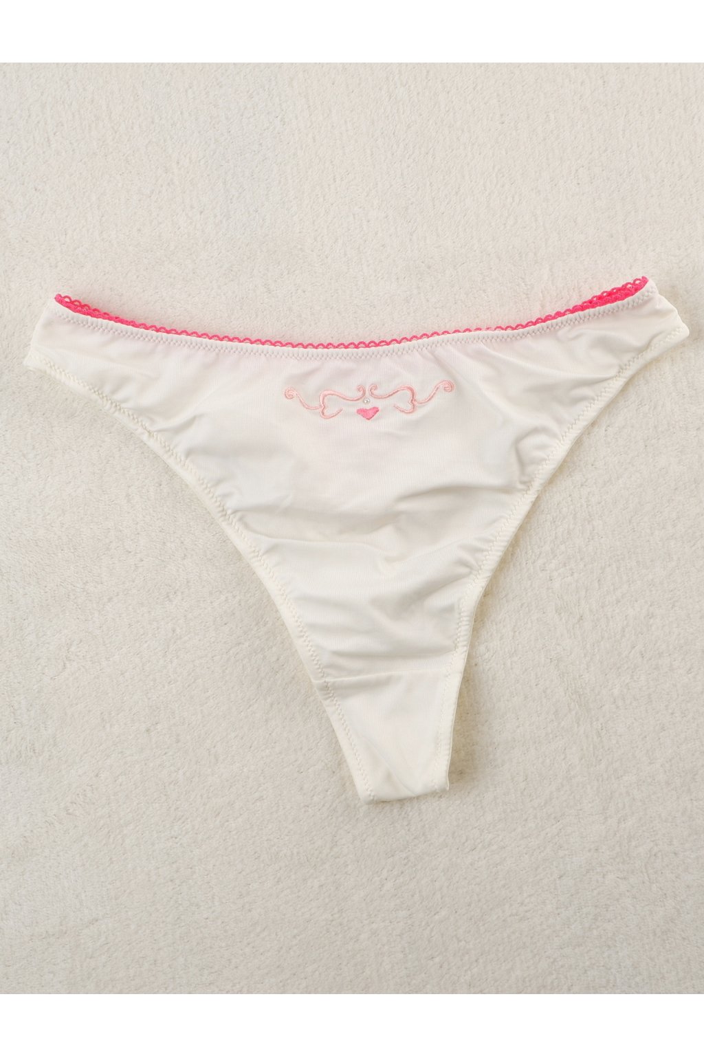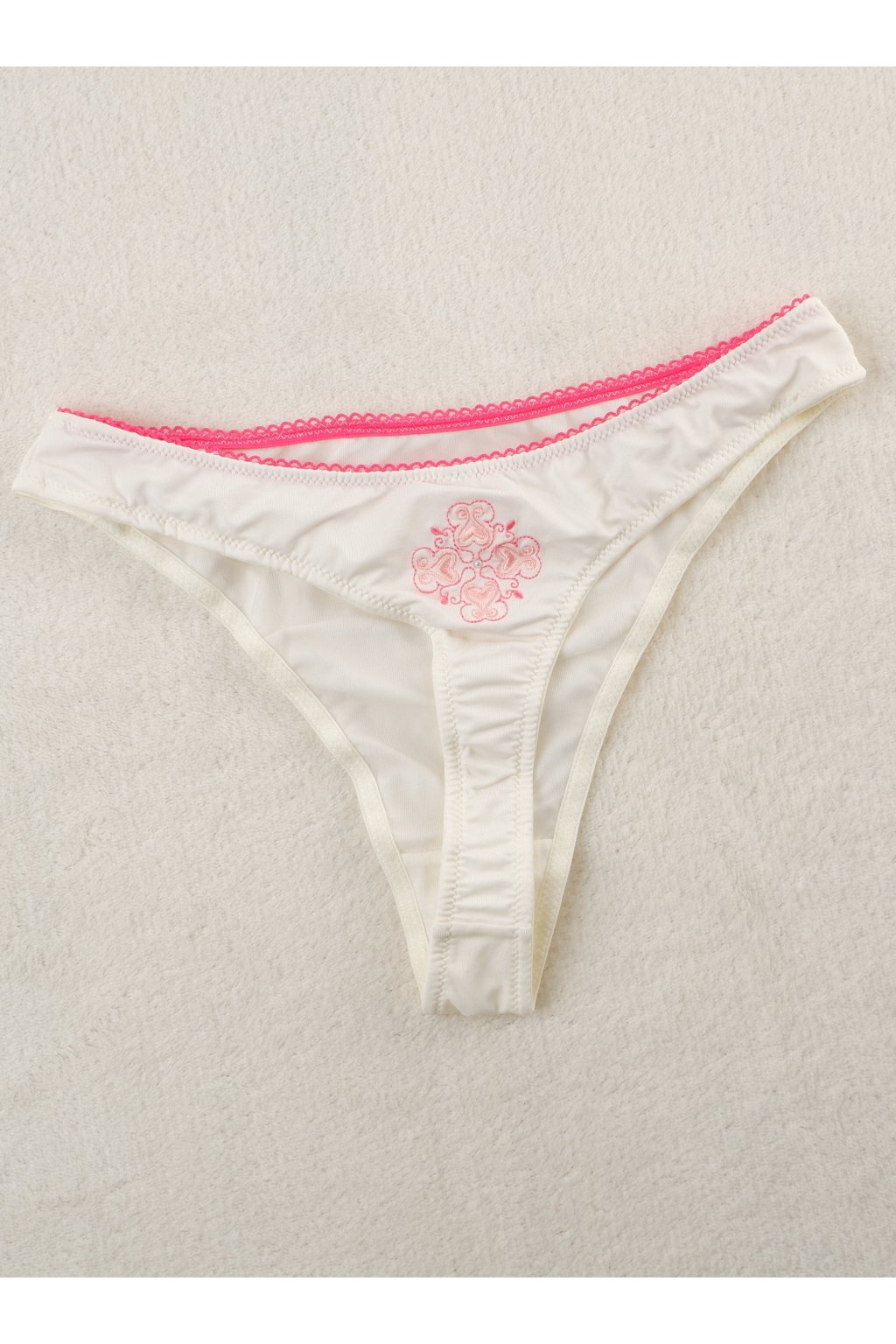 Kalhotky tanga bílé s růžovým vyšíváním vel. S