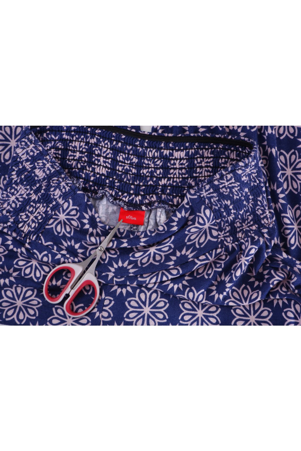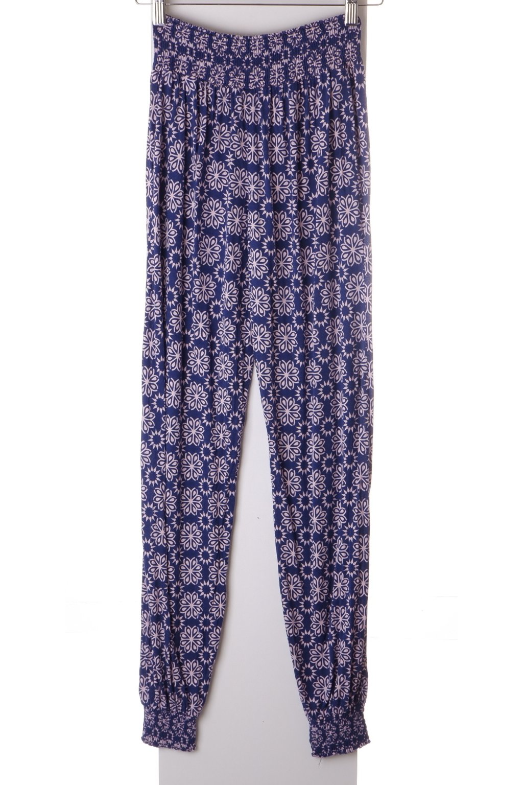 Kalhoty s.Oliver letní tenké modré s růžovým vzorem vel. XS