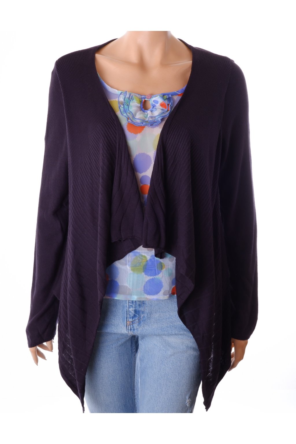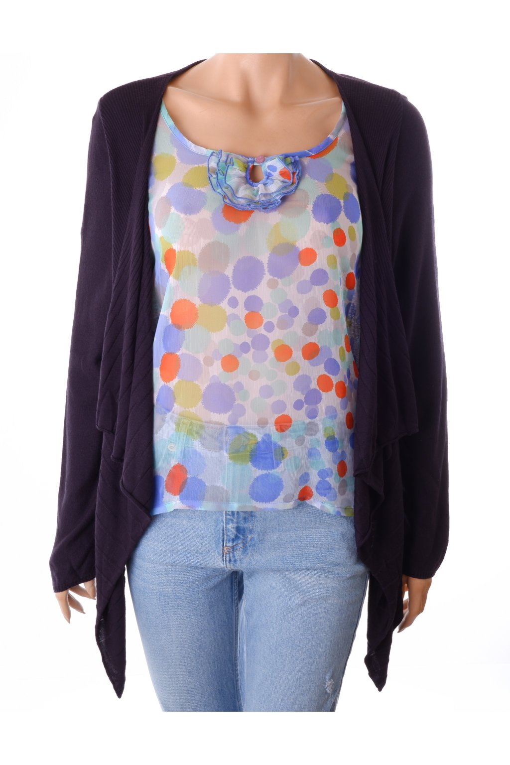 Kardigan Marks&Spencer modrý s barevnou halenkou vel. M / uk 14