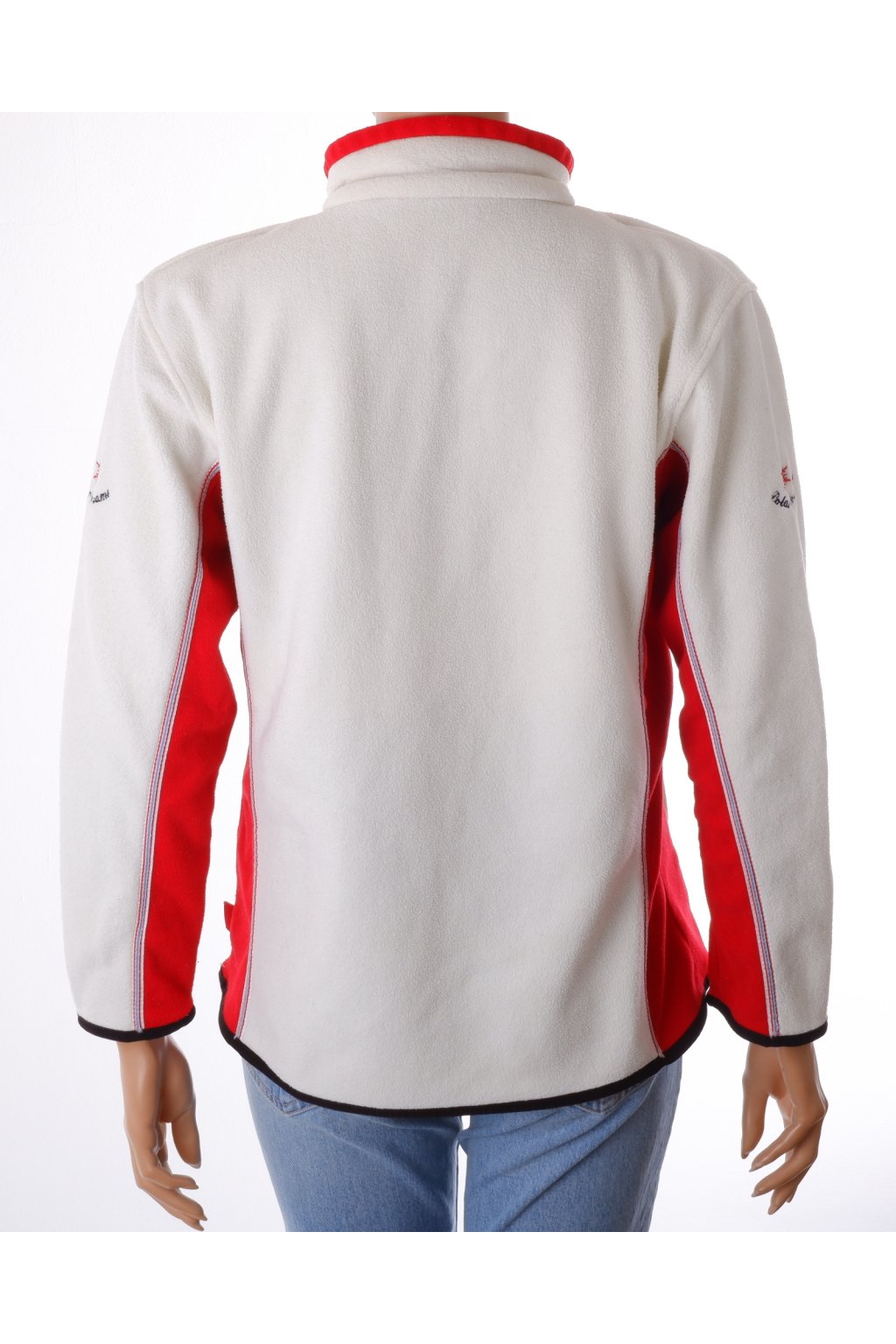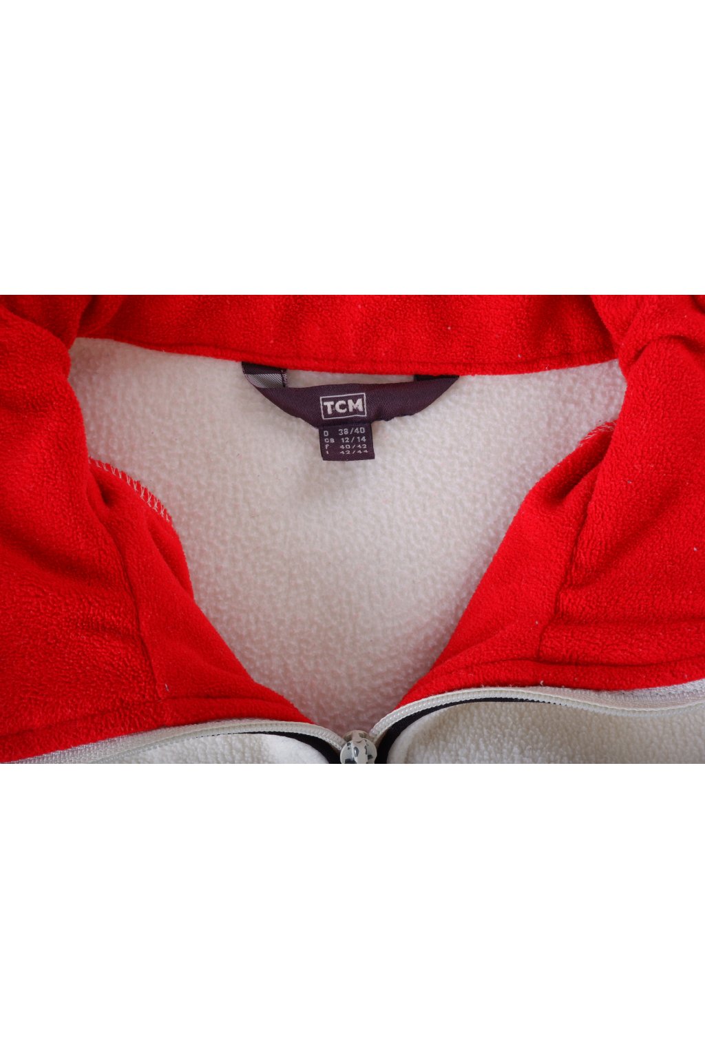 Mikina flísová Tchibo bílá s červeným límcem a boky vel S/M