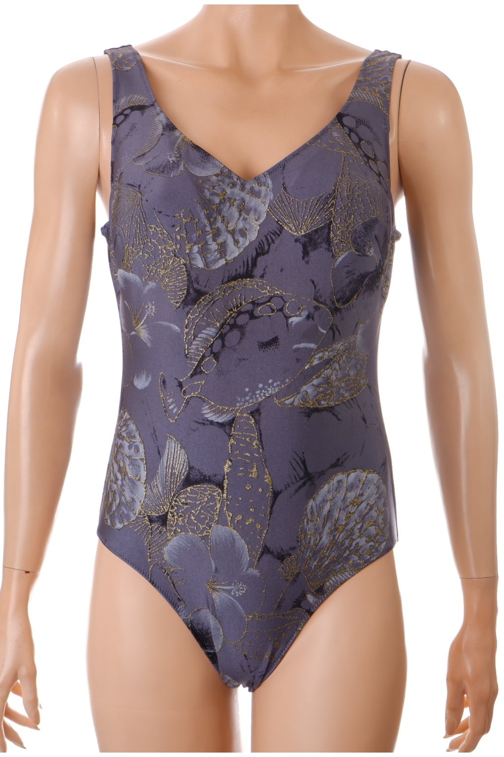 Plavky jednodílné šedé se zlatým vzorováním vel. 46 / L