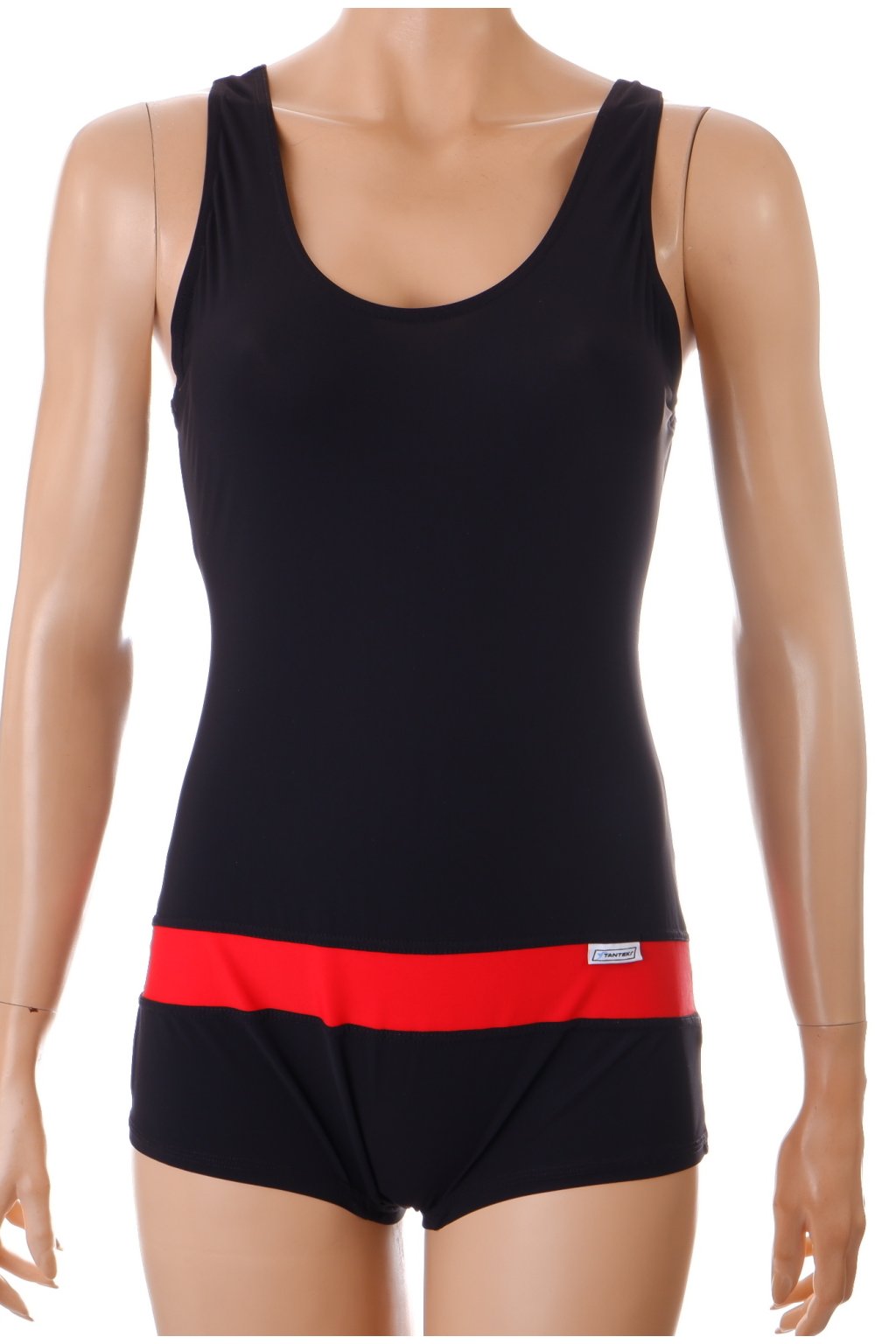 Plavky jednodílné Tanteks černé s červeným pruhem vel. M