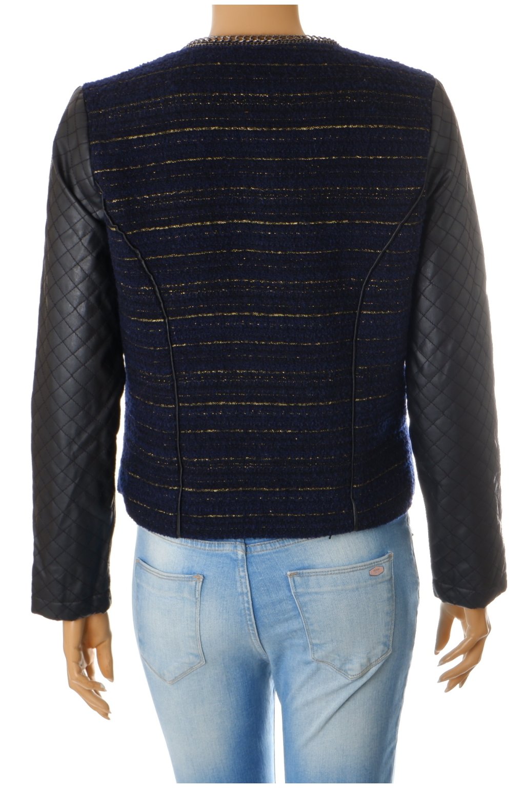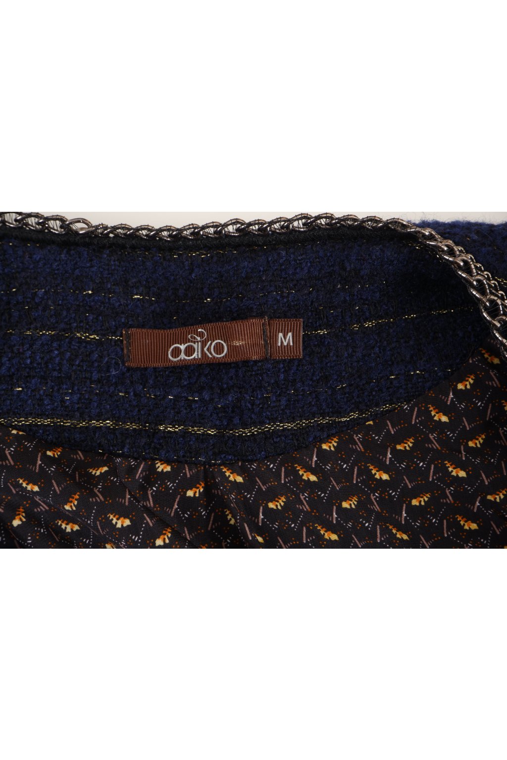 Sako bunda Aaiko modré s koženkovým rukávy 30% vlna vel. S - M