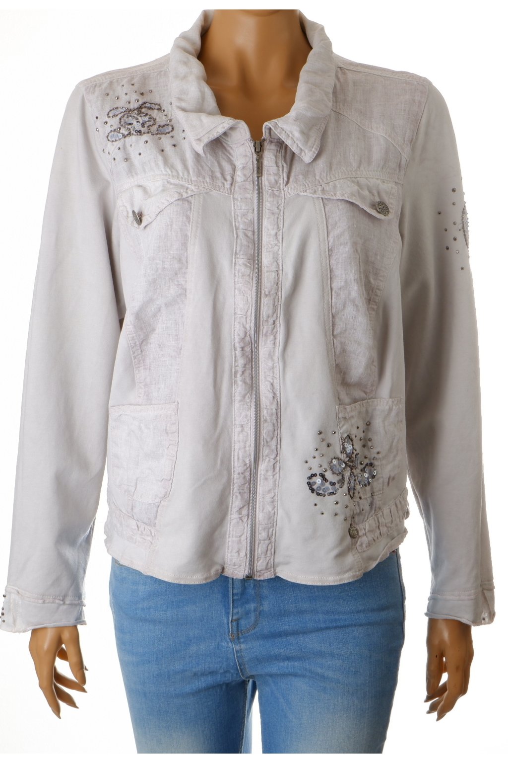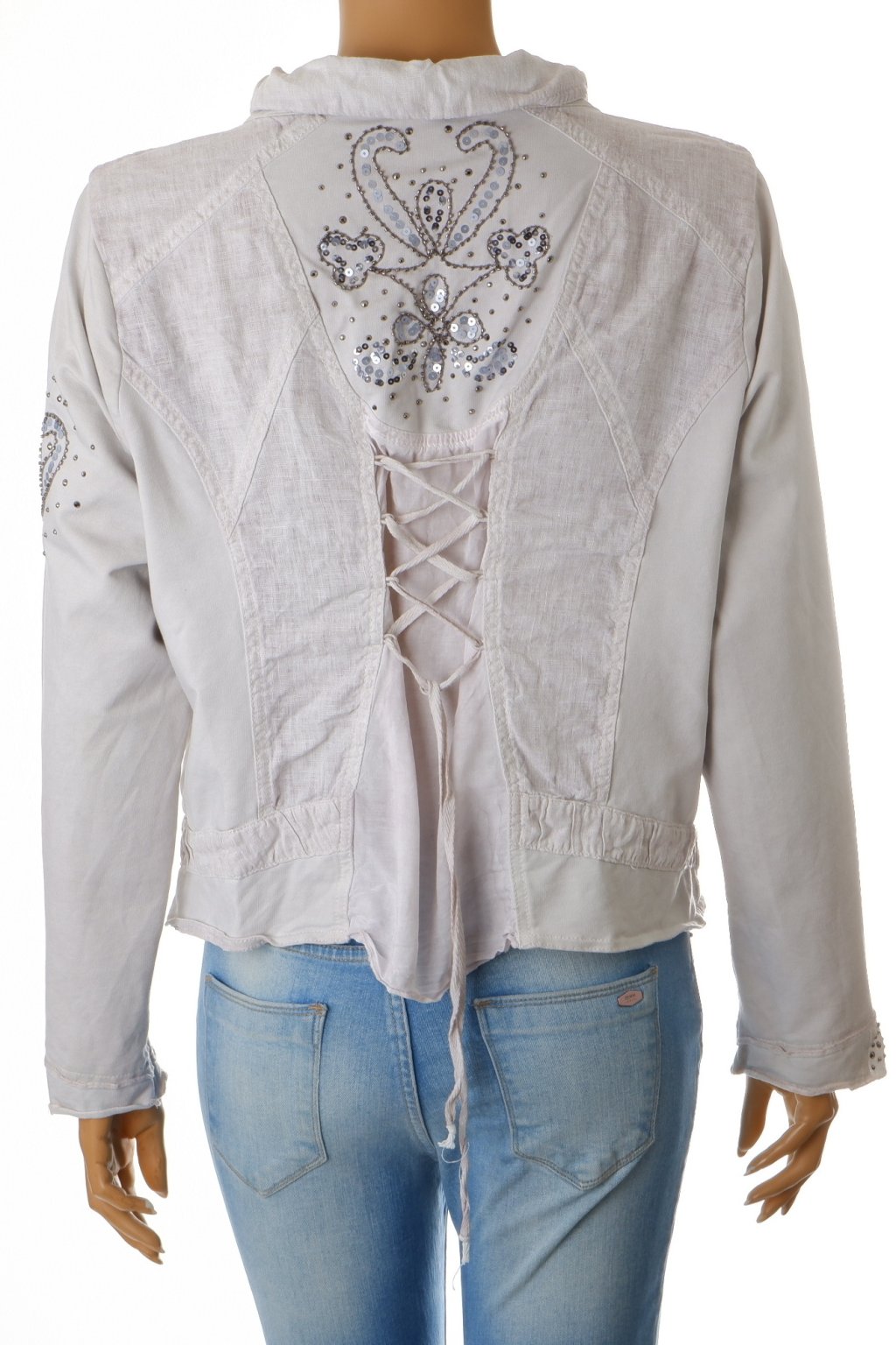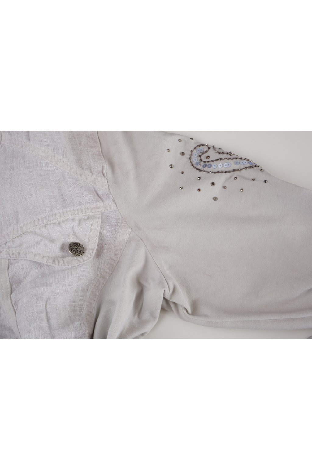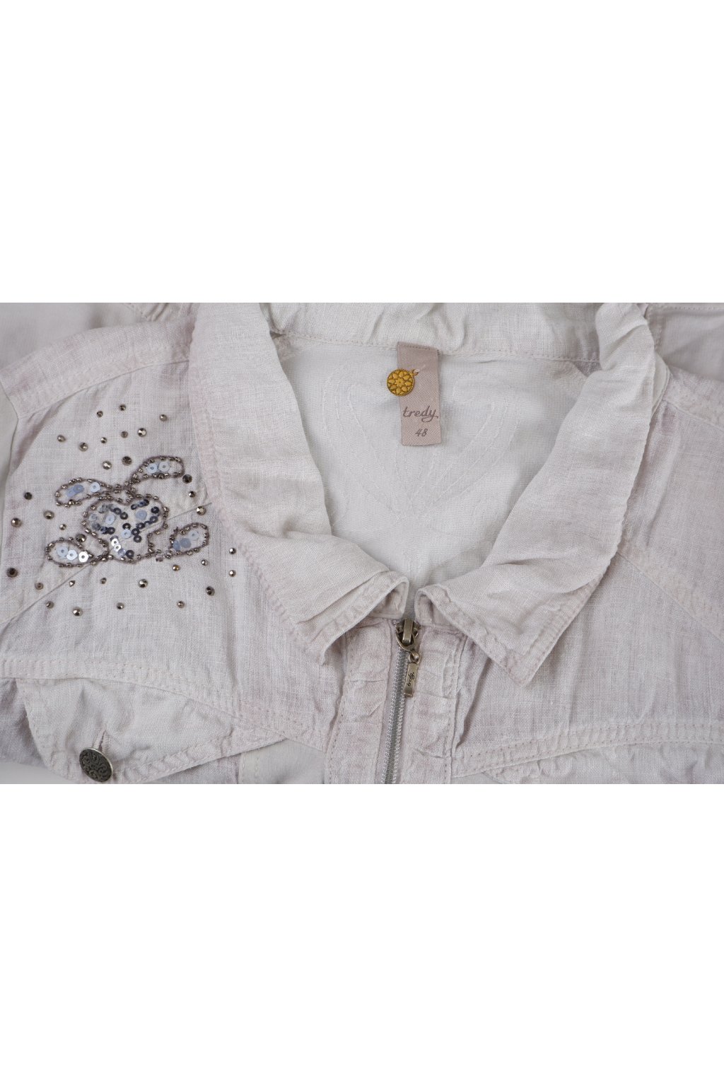 Sako Tredy s korálky ozdobné šedo béžové lněné části vel. 48 / XL