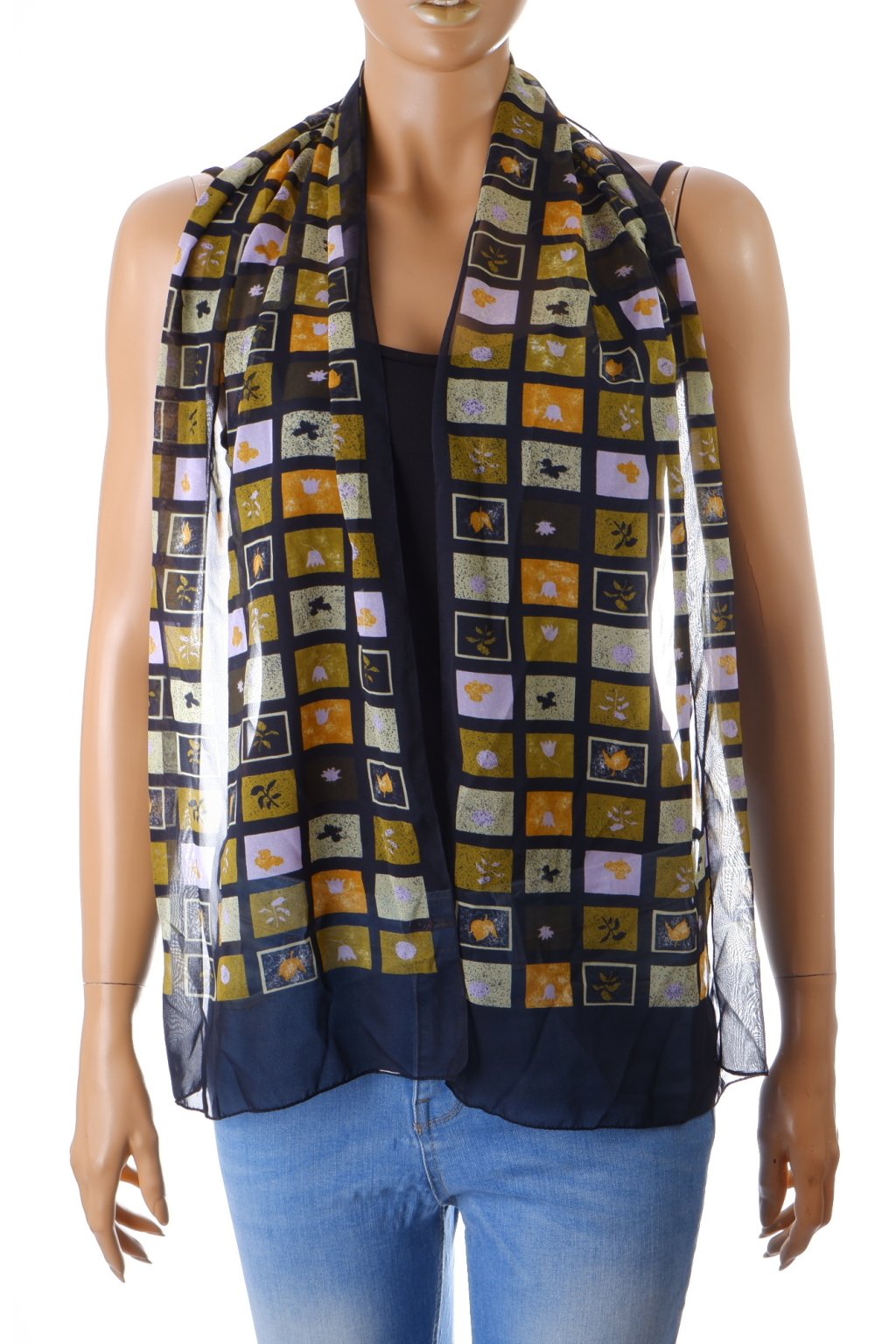 Šátek černý s barevnými čtverečky