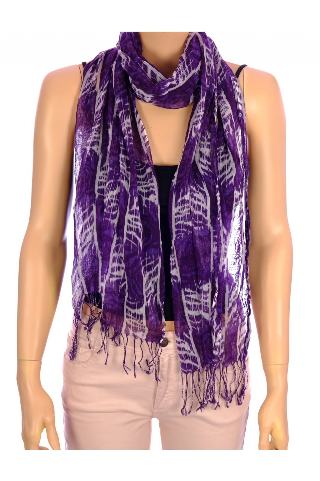 Šátek Tchibo fialovo bílý vzor 20% hedvábí