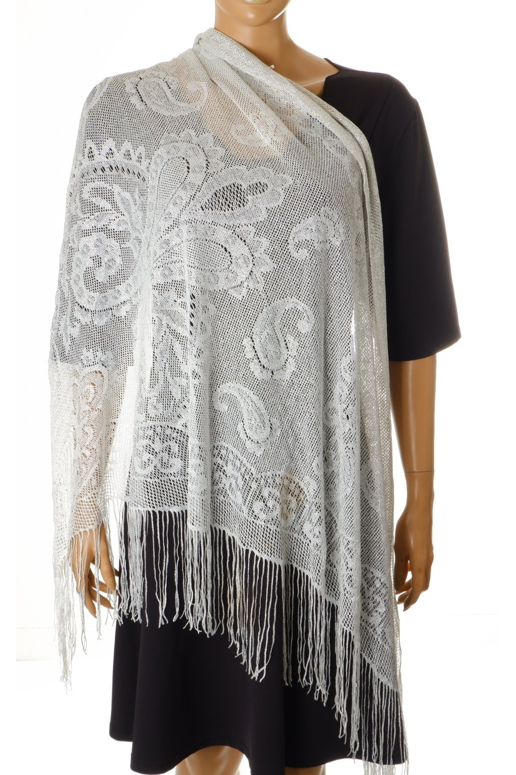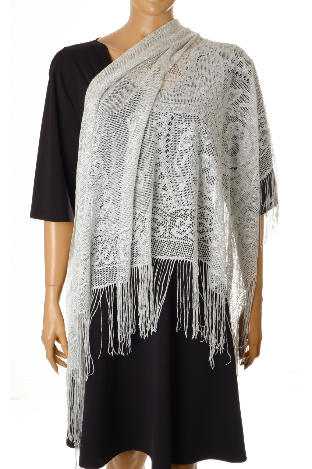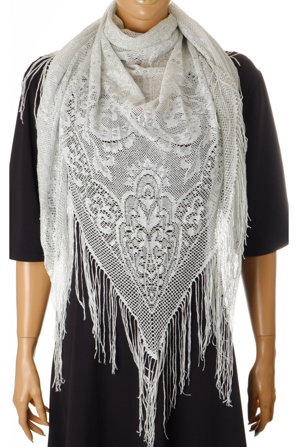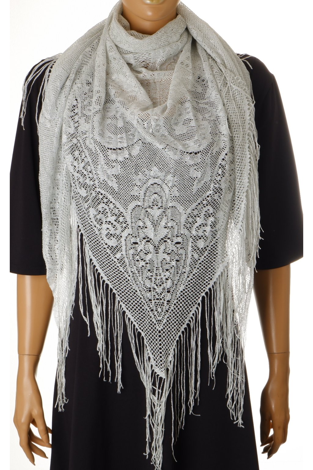 Šátek třpytivý lesklý krajkový stříbrno šedý