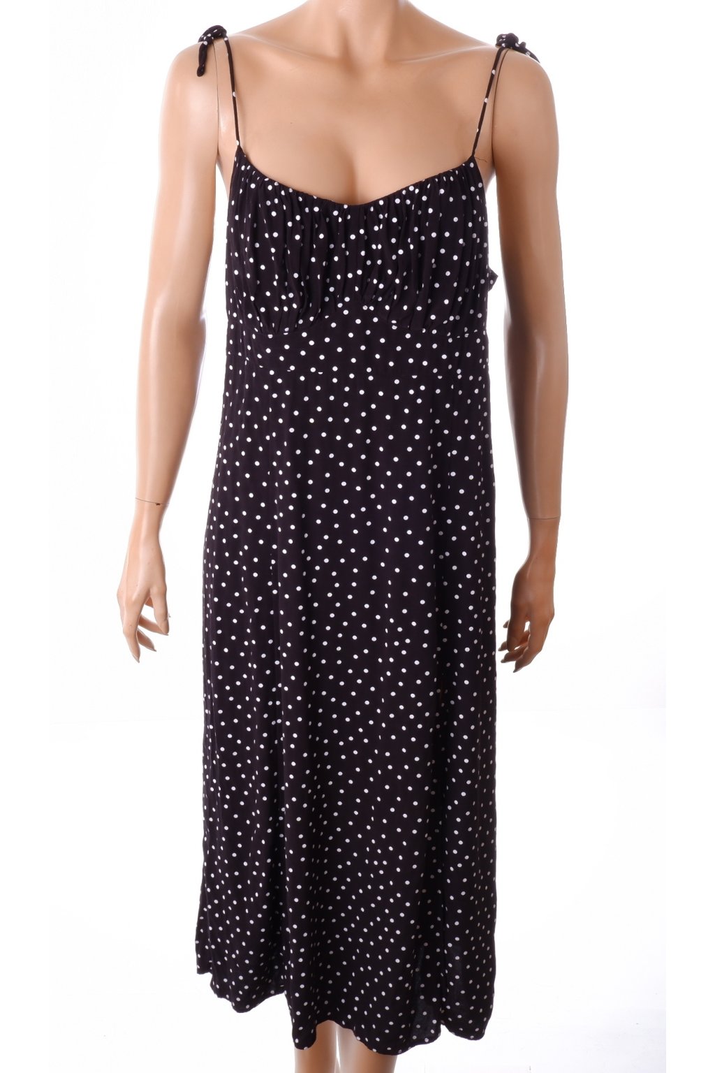 Šaty C&A černé s bílými puntíky s rozparkem vel. 44 / L