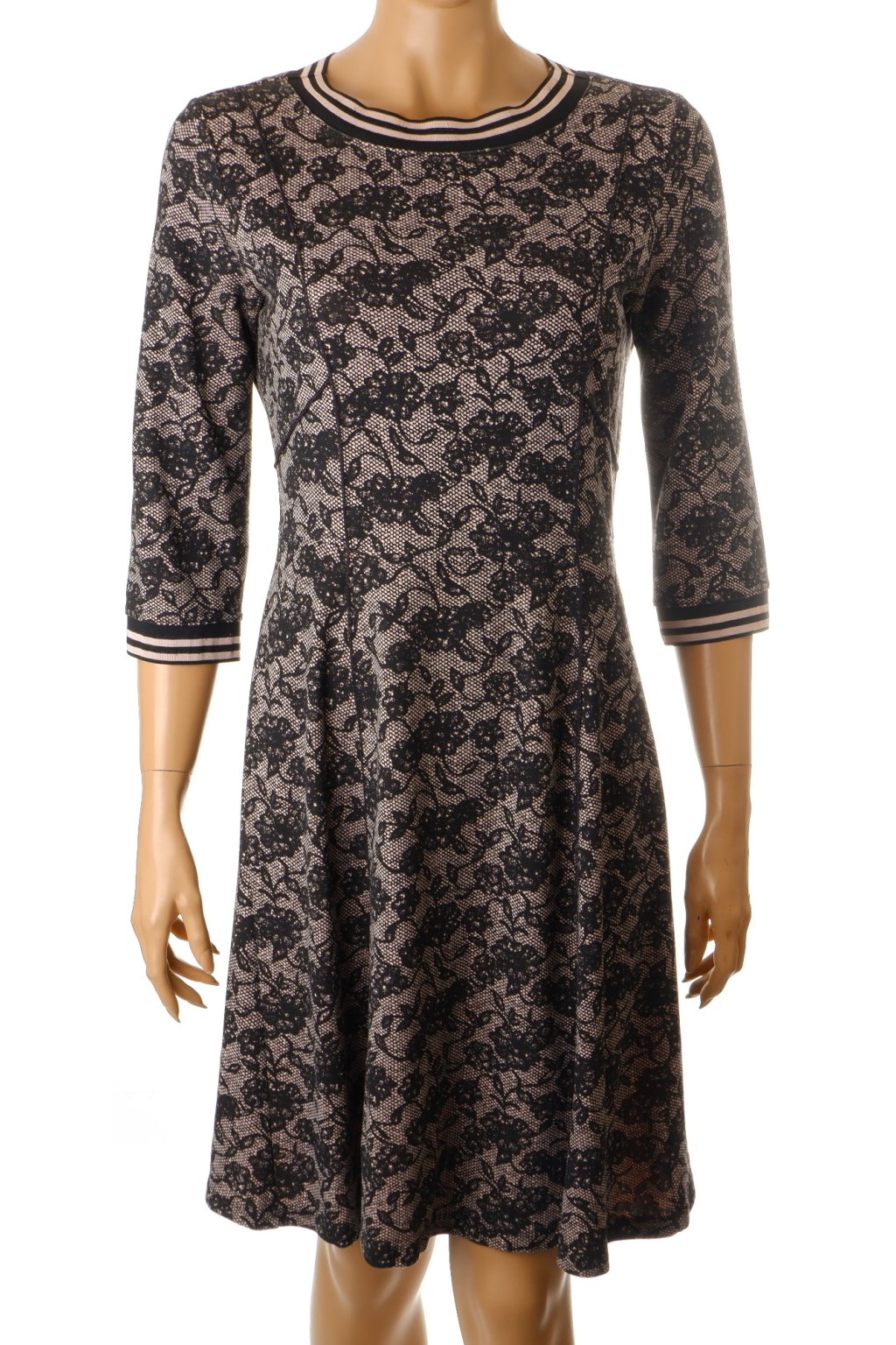 Šaty Cartoon hnědé se vzorem černé krajky vel. 38 / uk 12 / S - M