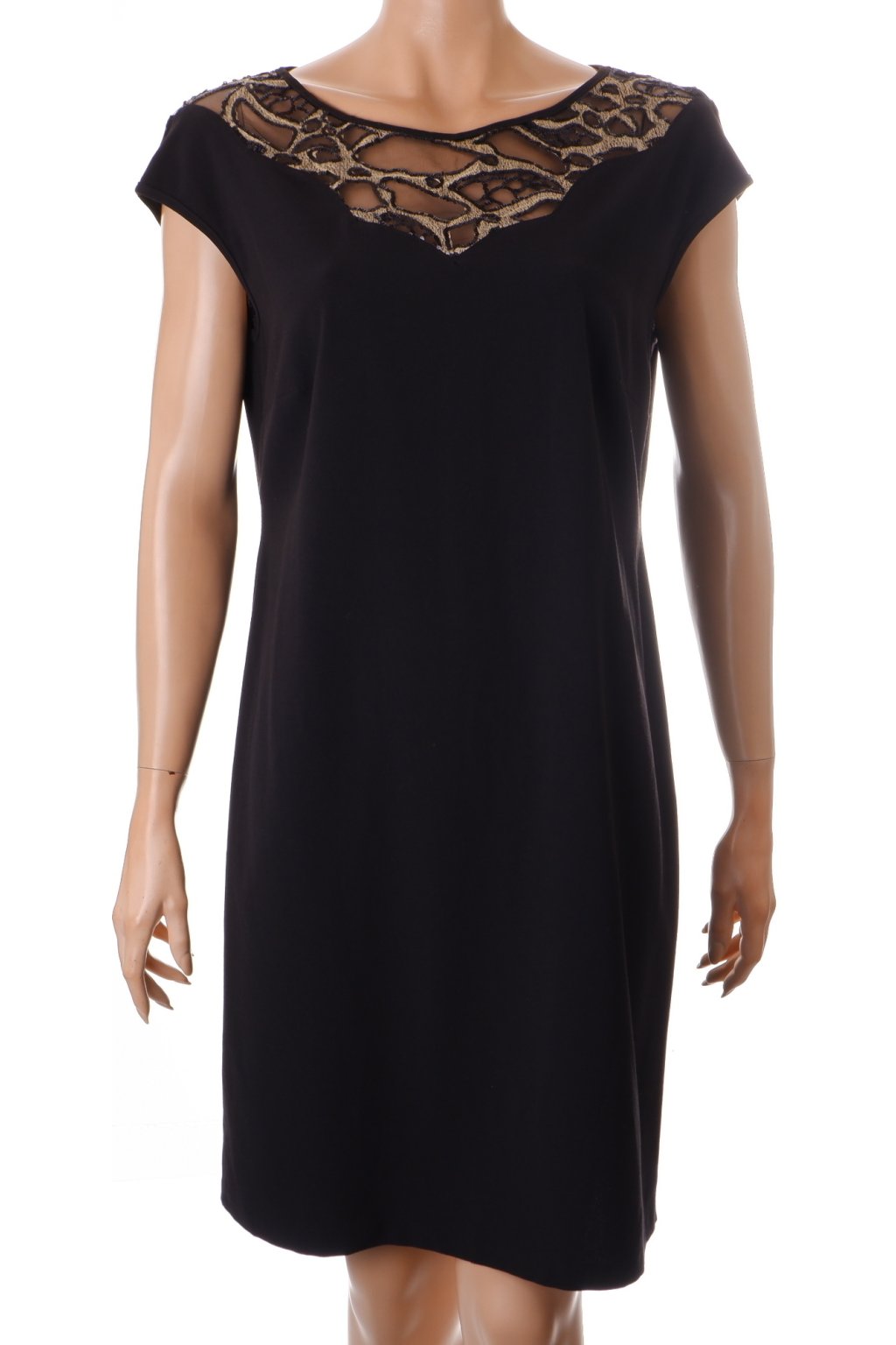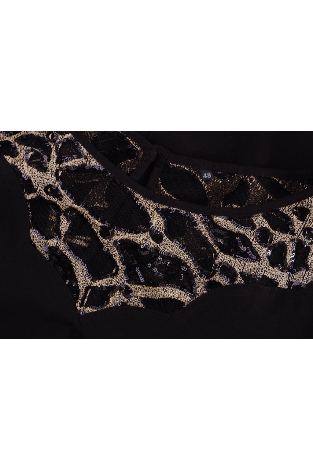 Šaty černé u výstřihu s ozdobným vyšíváním a flitry vel. 48 / XL