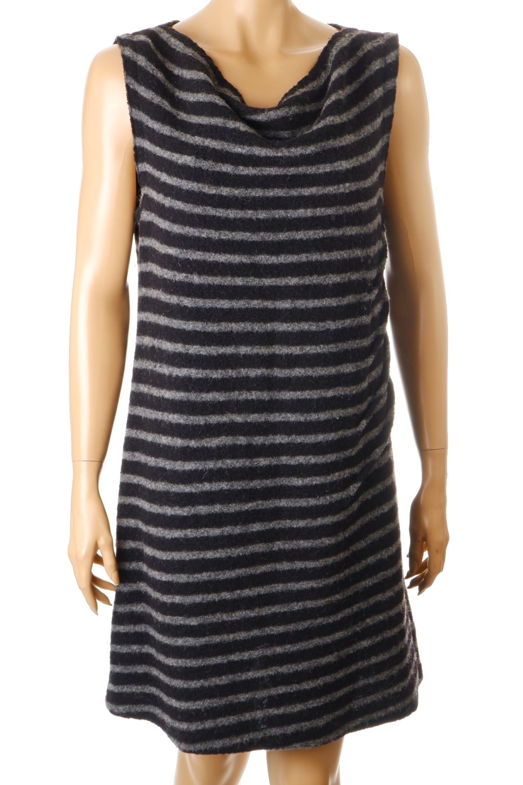 Šaty Consequent černo šedé pruhované 80% vlna vel. 42 / M