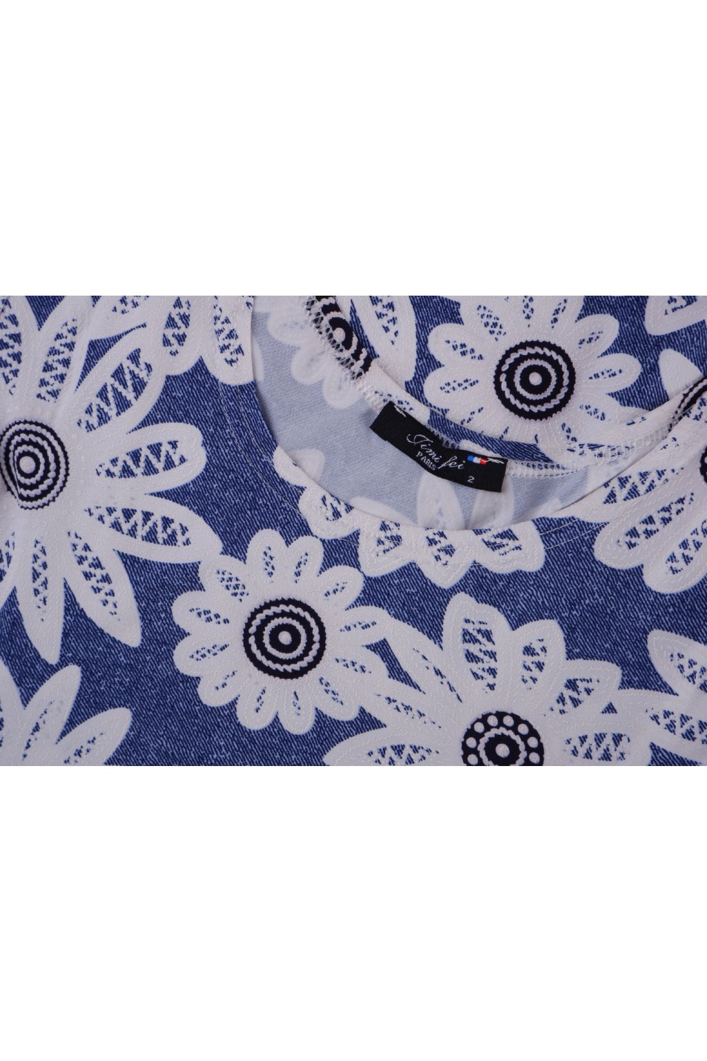 Šaty Fimi Fei modré s bílým plastickým kvítím vel. S