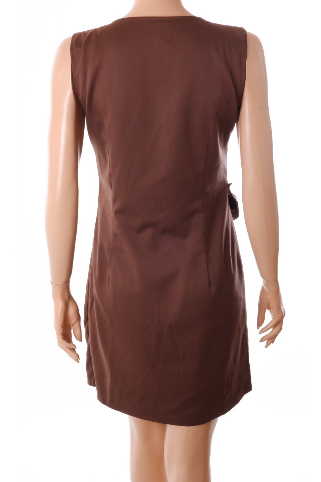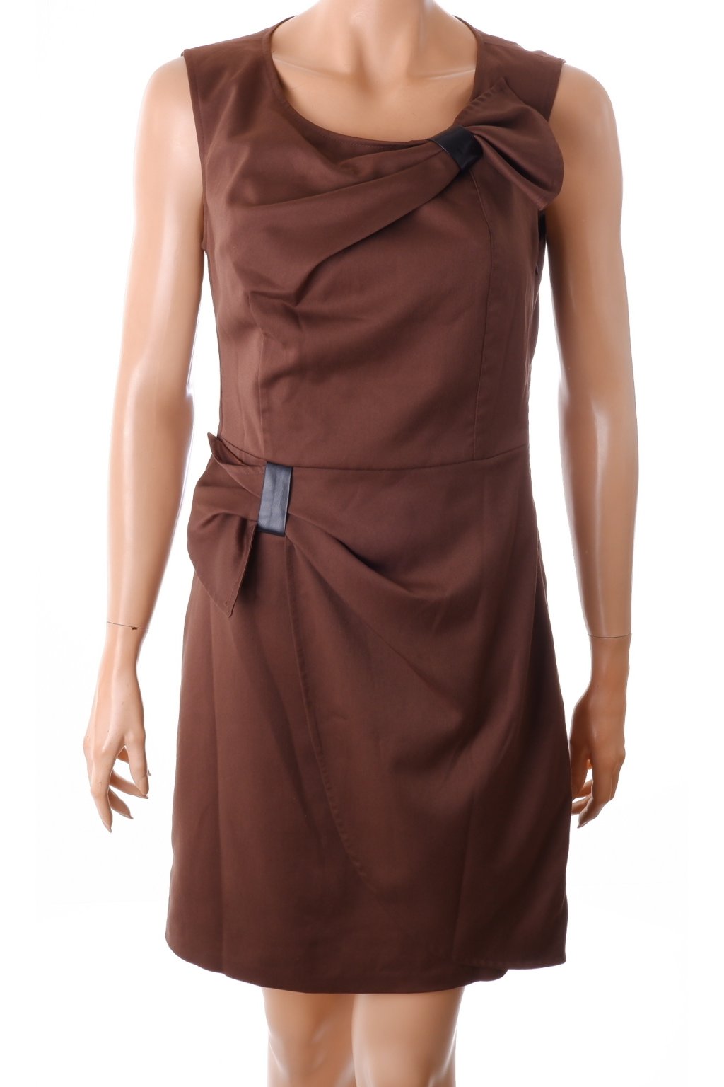 Šaty Fyionas hnědé do studena s koženkovými detaily a mašličkami vel. M / 40