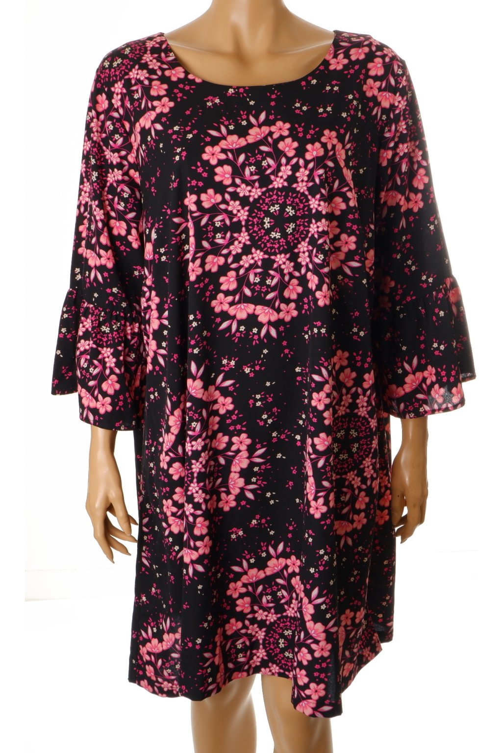 Šaty Junarose černé s růžovým kvítím vel. 50 / uk 24 / XL - XXL
