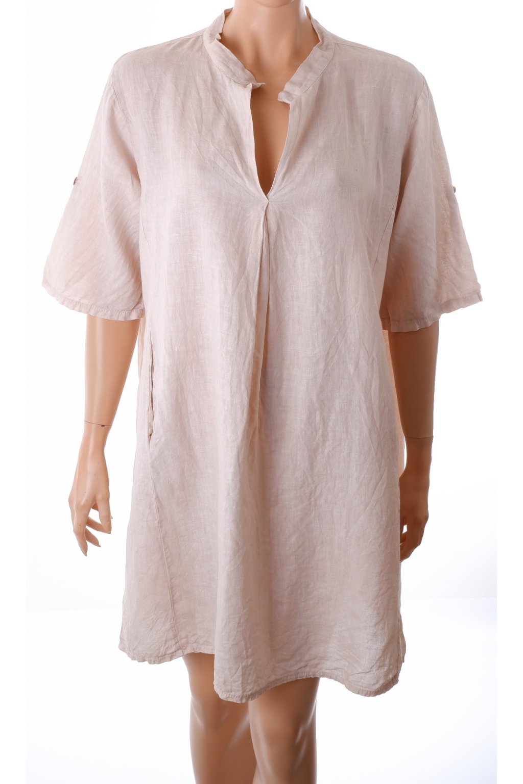 Šaty Made in Italy béžové lněné s kapsami vel. XL vada