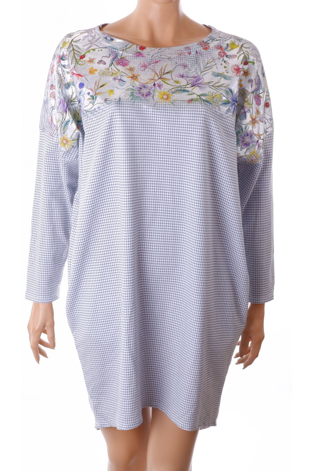 Šaty Made in Italy šedý kohoutí vzor nahoře lesklý barevný vzor vel. L
