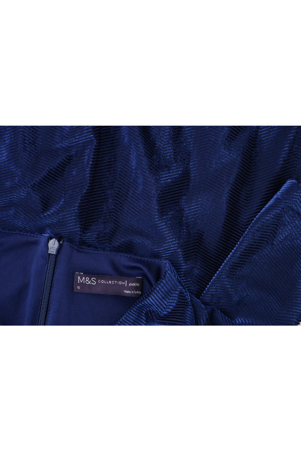 Šaty Marks&Spencer petite lehce lesklé modré jemný samet s řasením vel. M / 12