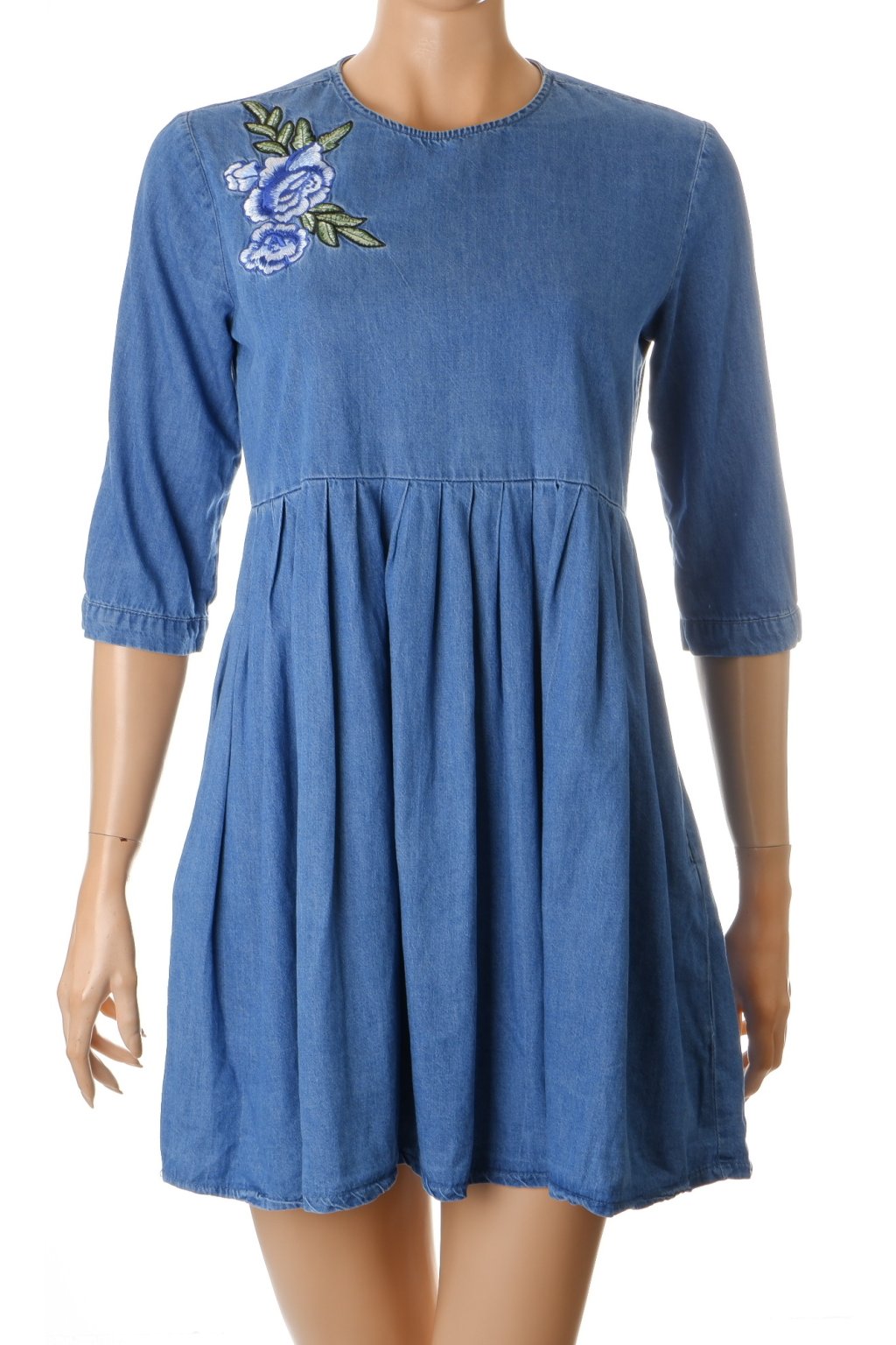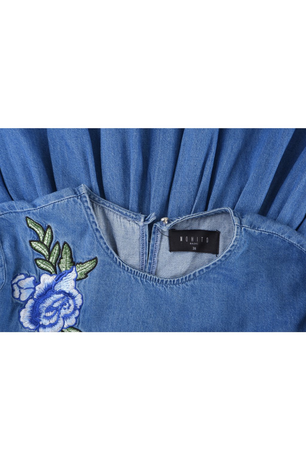 Šaty Mohito modré s výšivkou vel. 38 / S