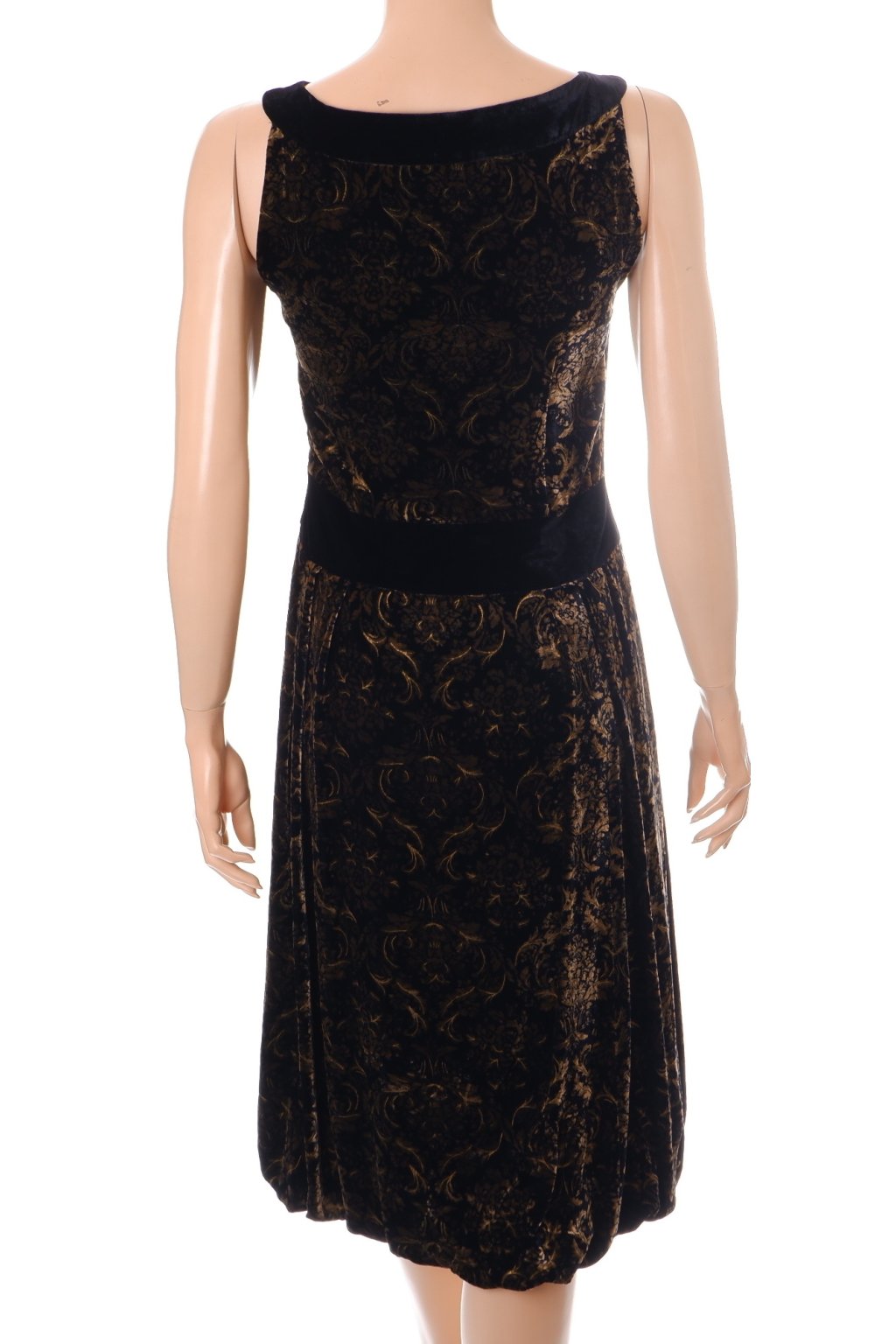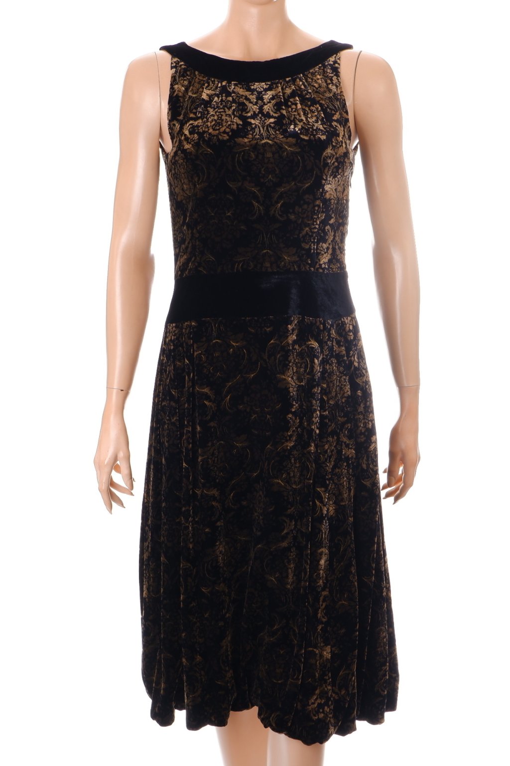 Šaty Monnari černé s hnědým vzorkem sametové 18% hedvábí na boku zip vel. 36 / S