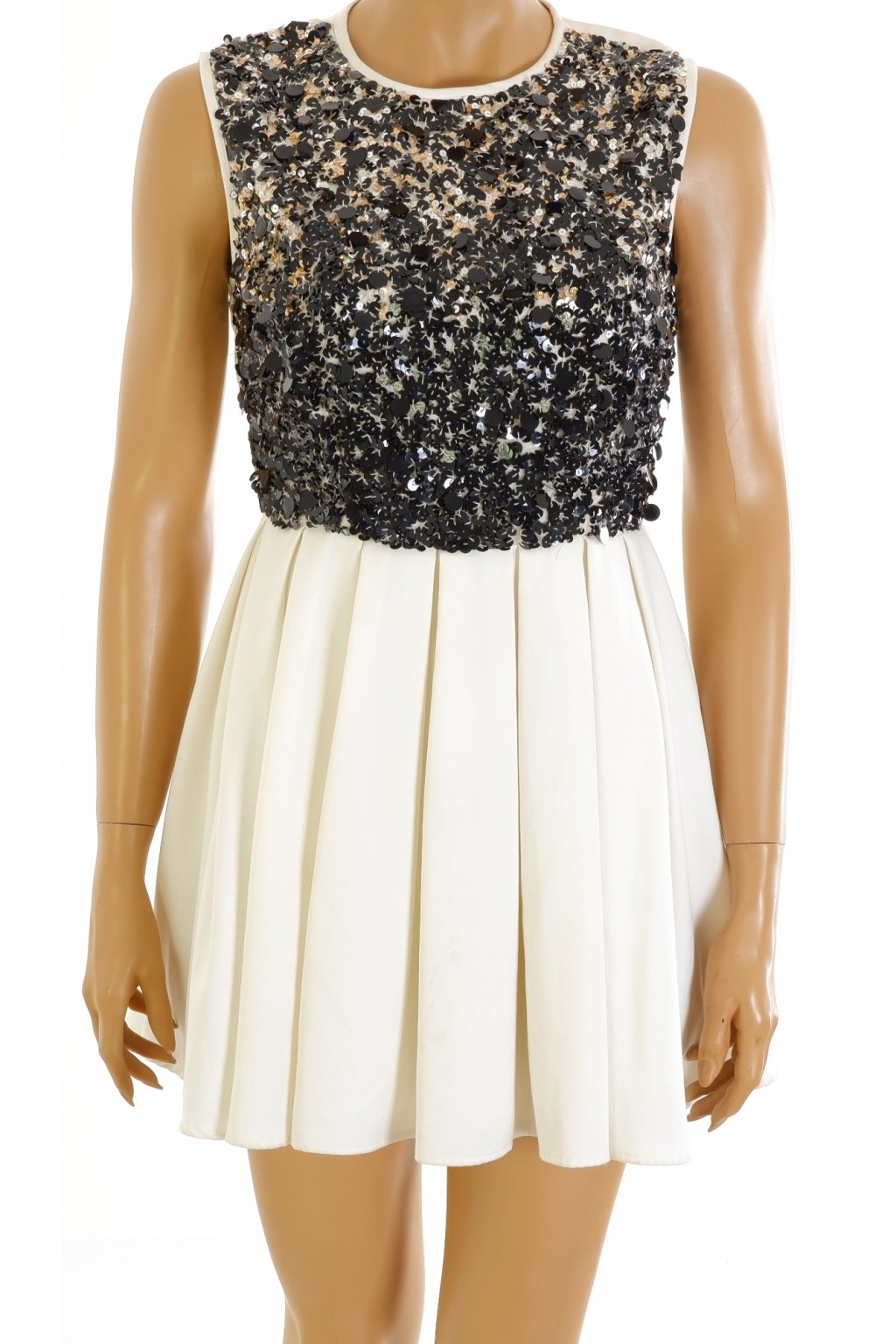 Šaty TFNC bílé s černými a zlatými flitry vel. S