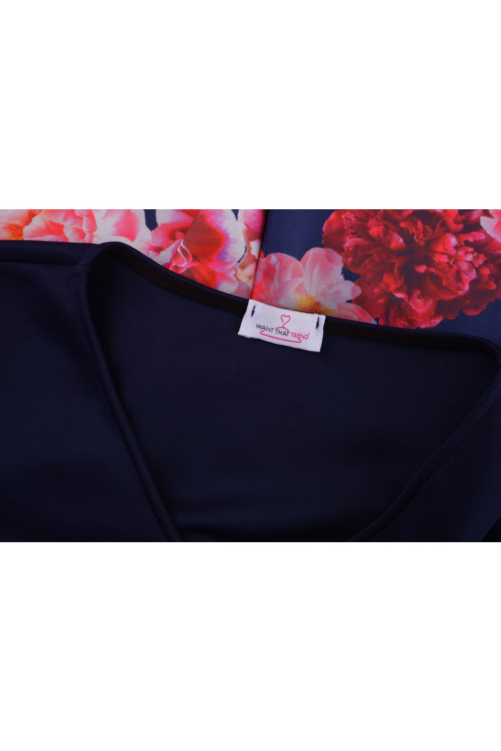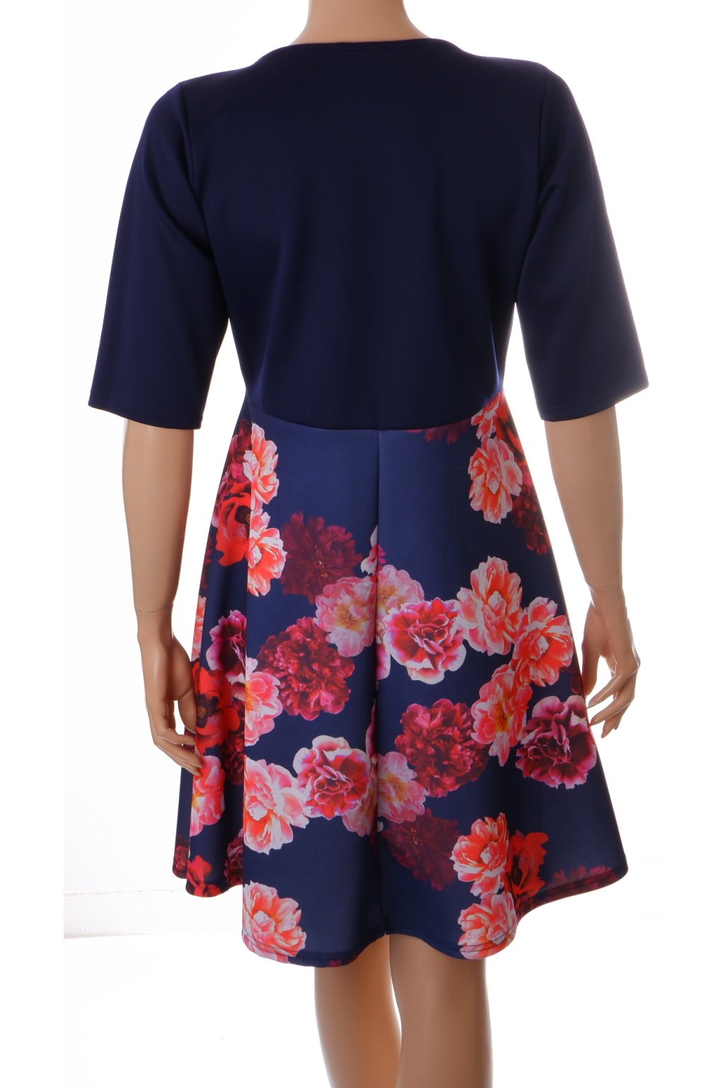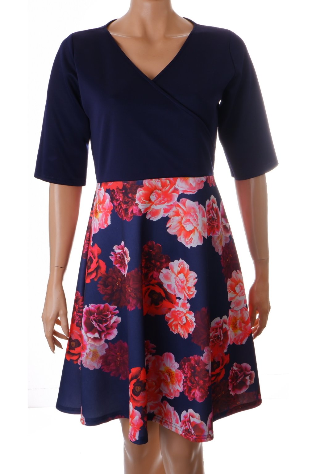 Šaty tmavě modré s květovanou sukní vel. L / uk 16