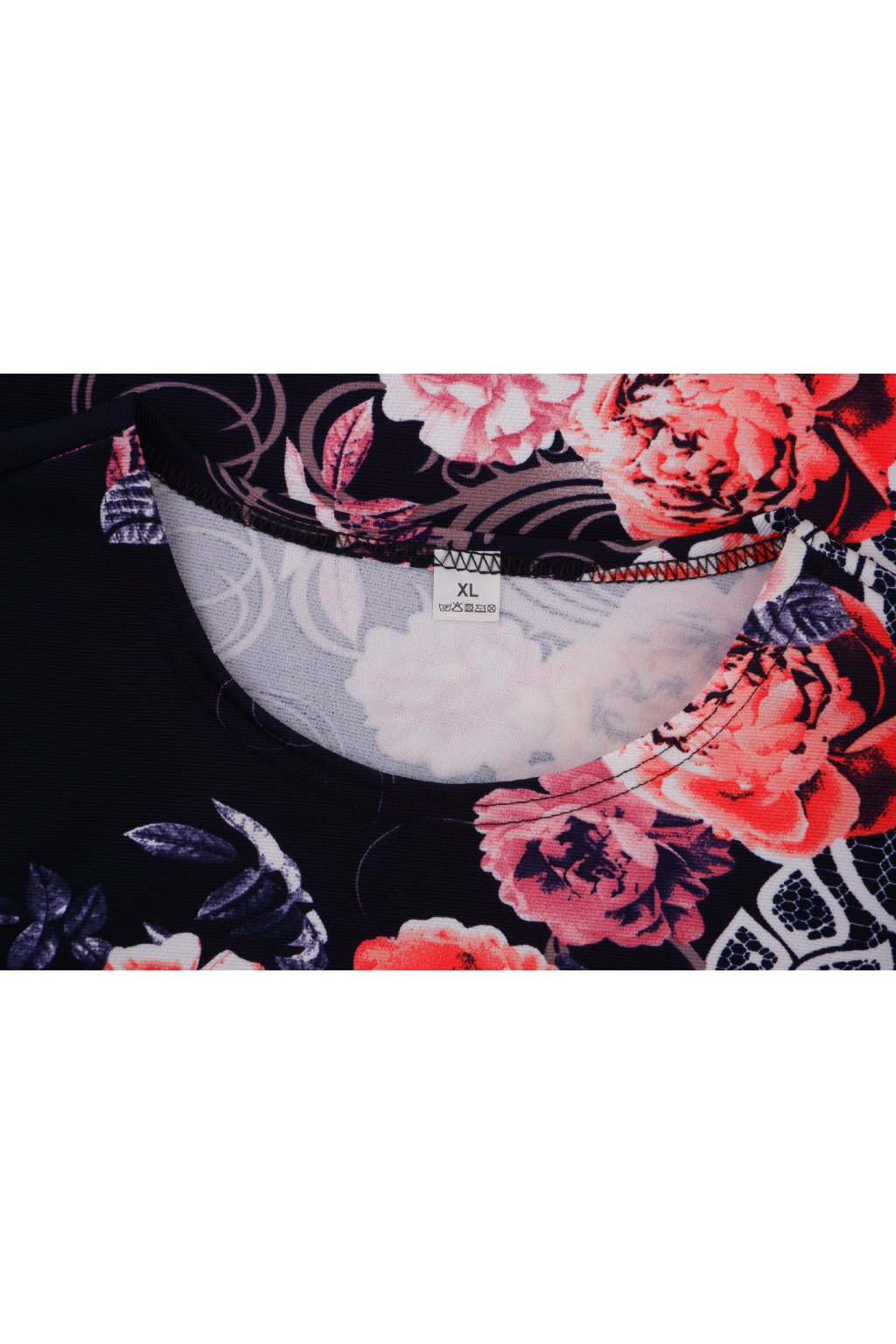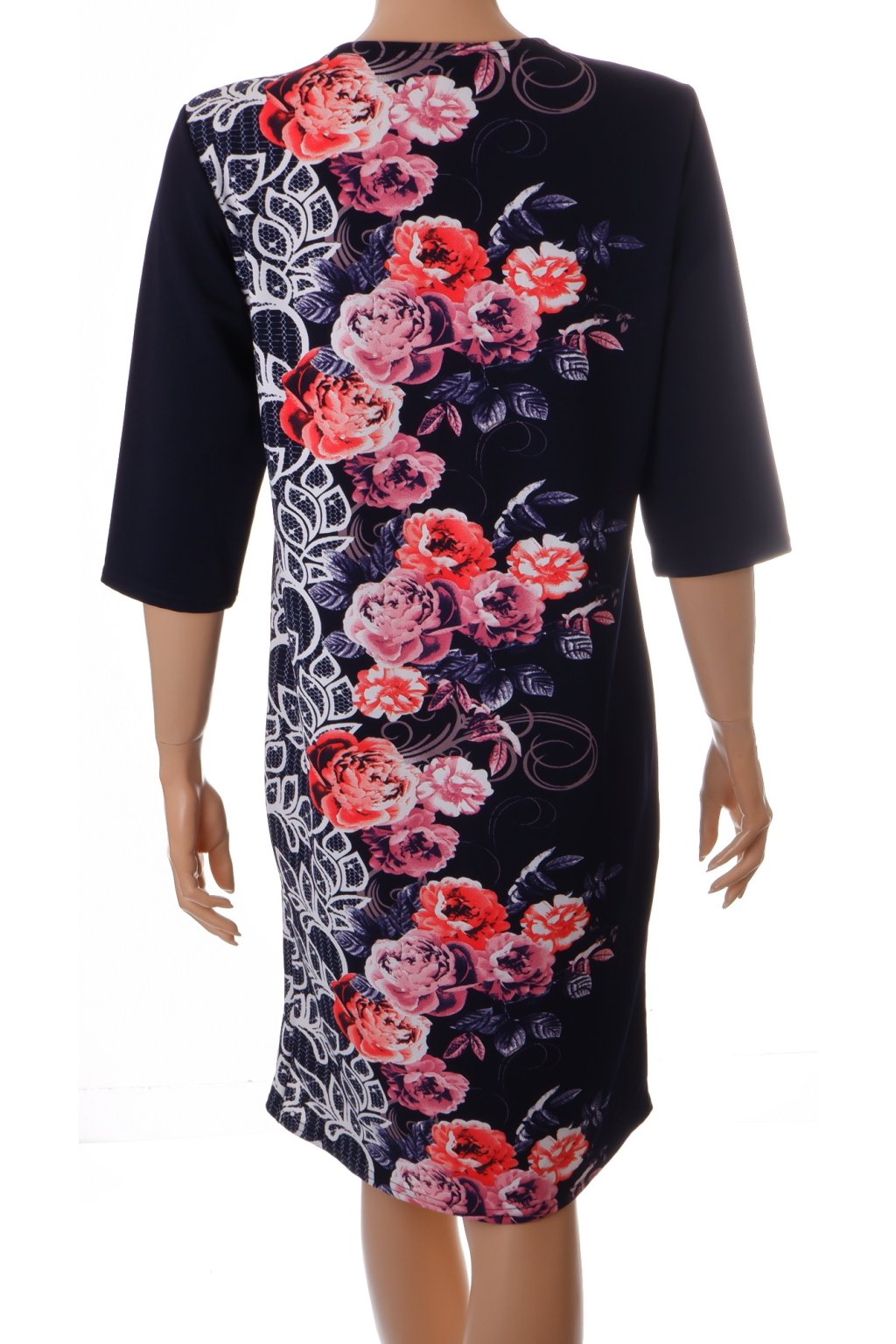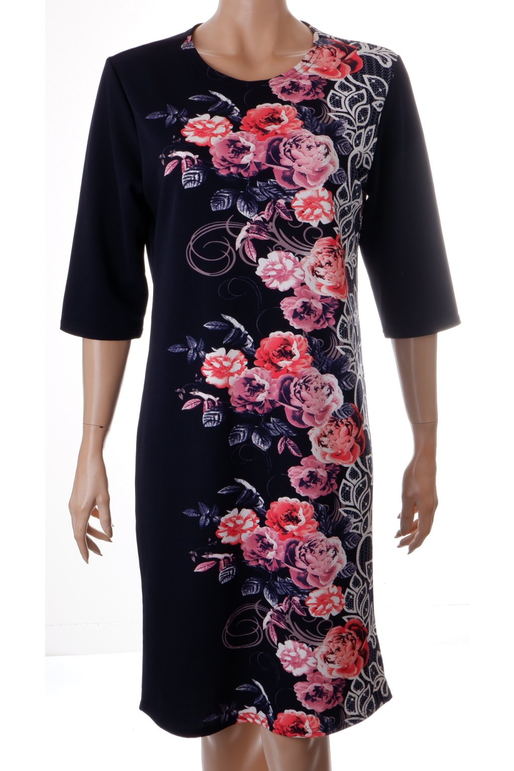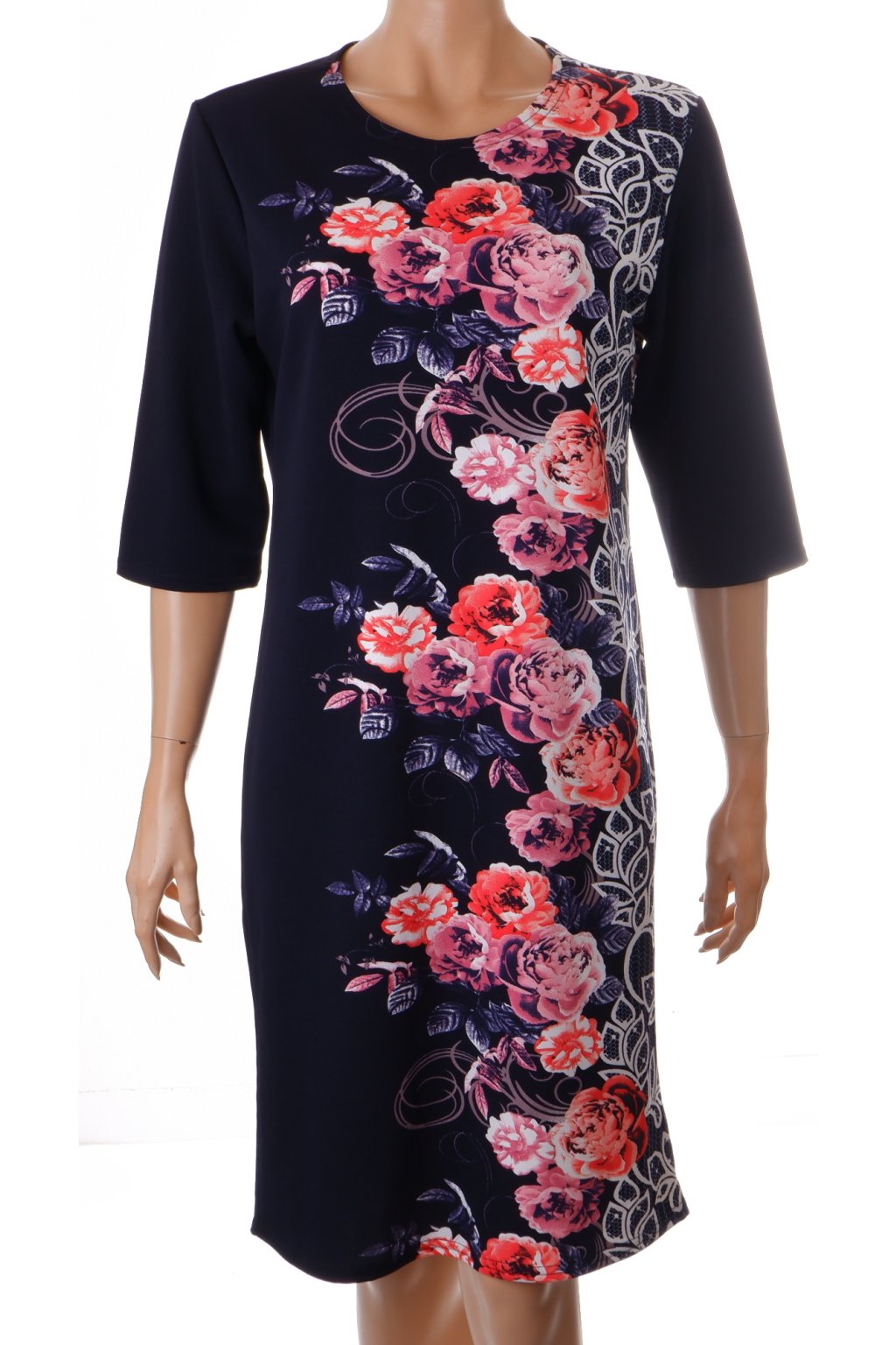 Šaty tmavě modré s růžovými květy vel. L