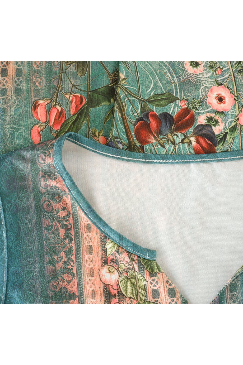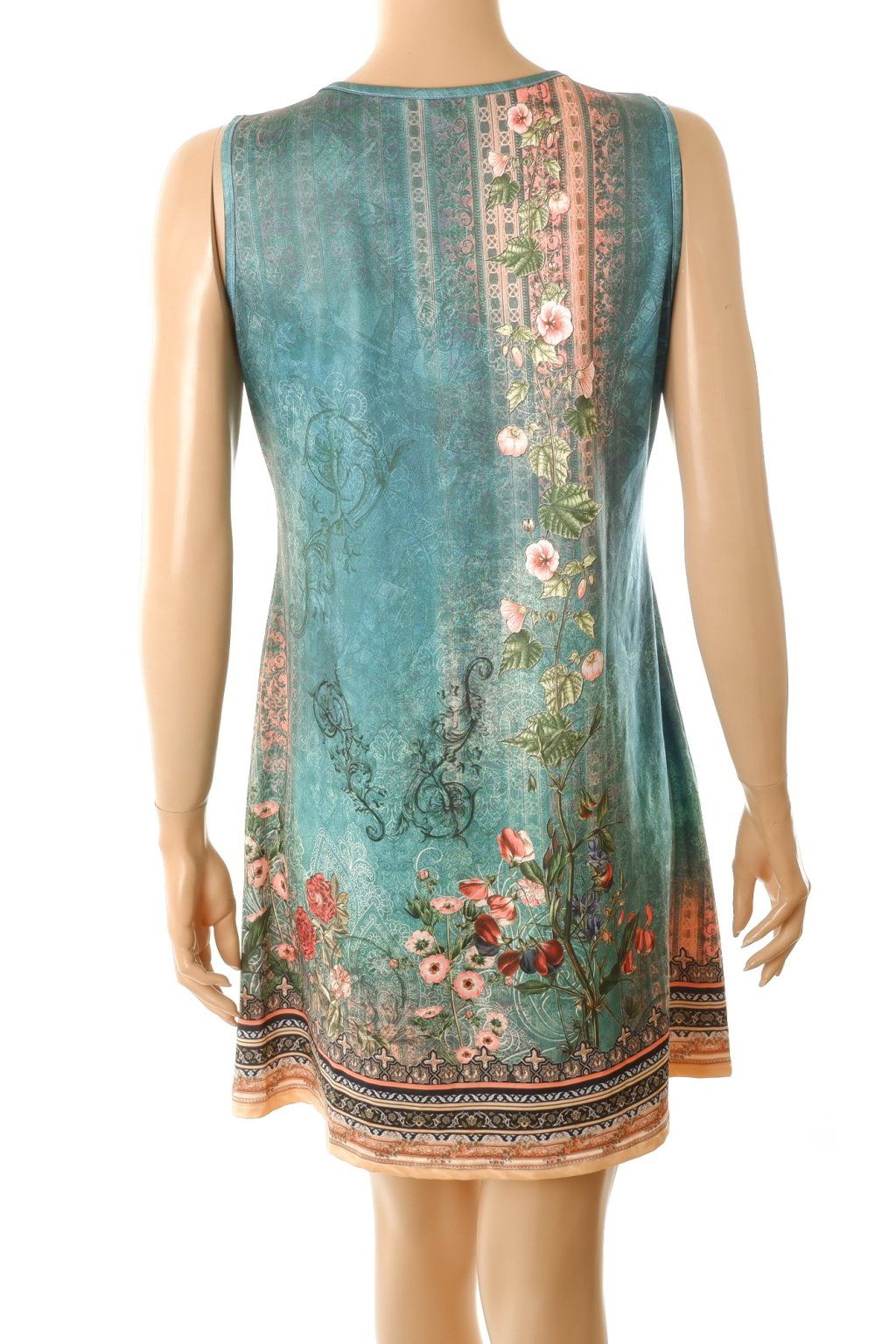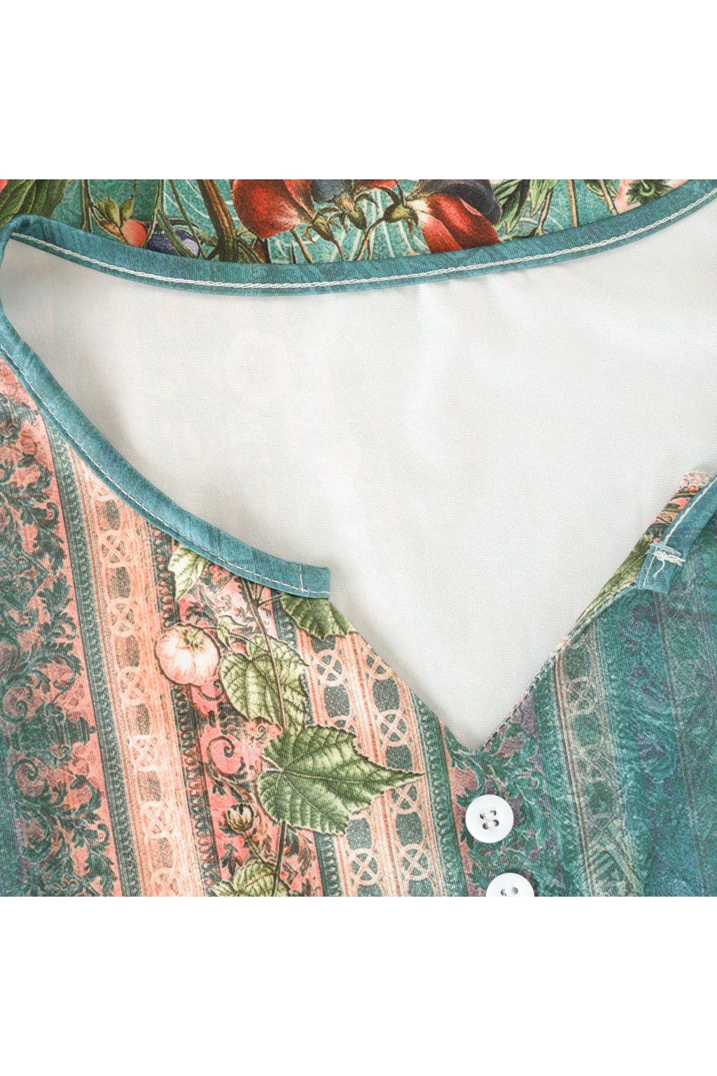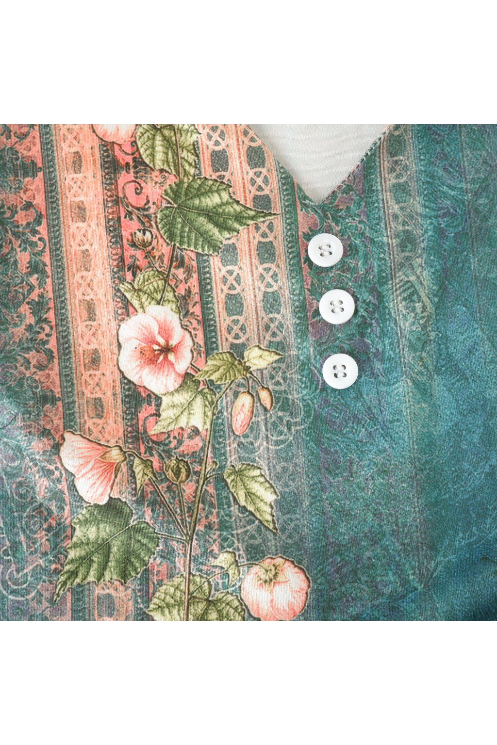 Šaty zeleno tyrkysové se vzorem a knoflíčky vel. L
