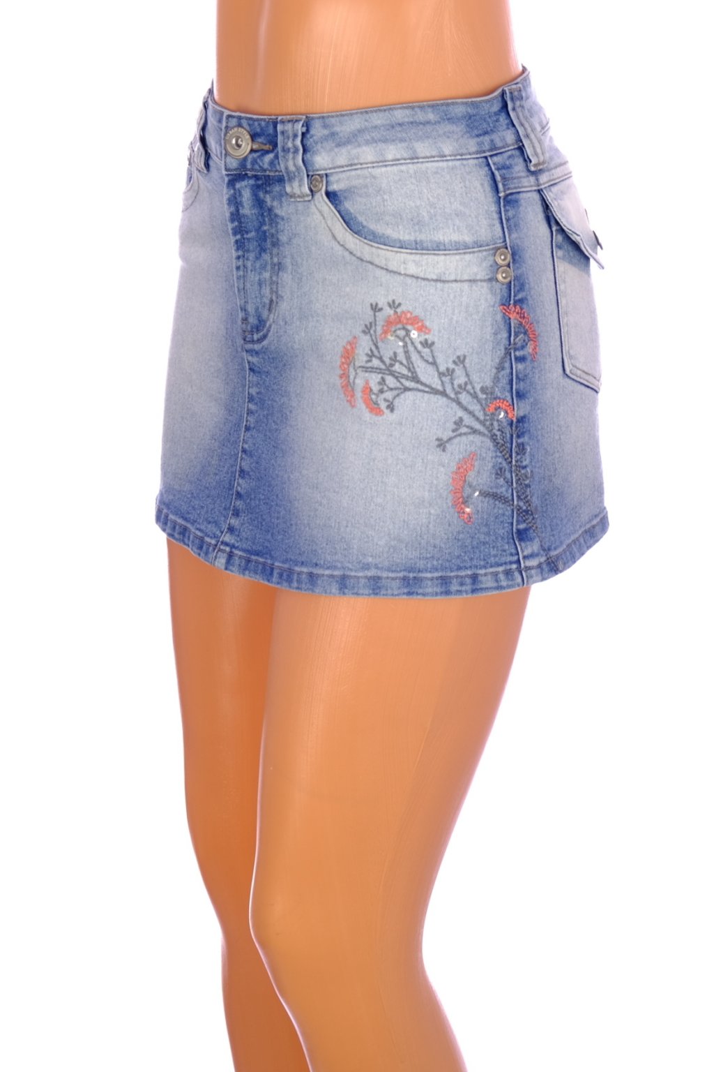 Sukně riflové modré s kytičkama vel. 32 / XS