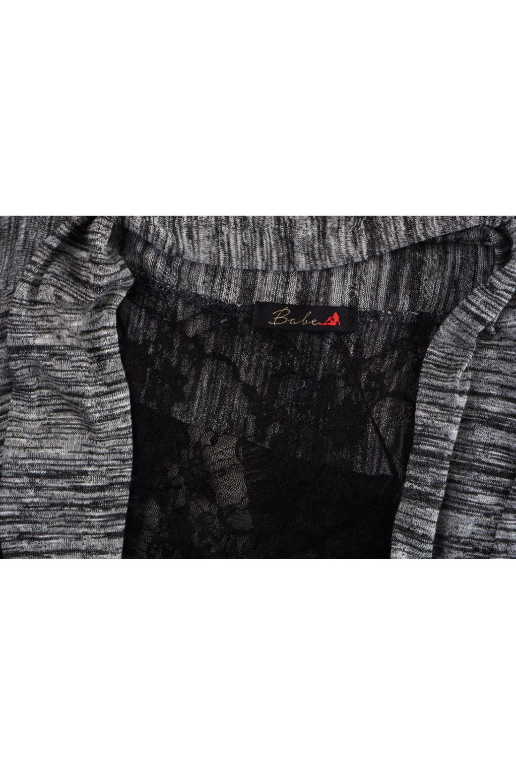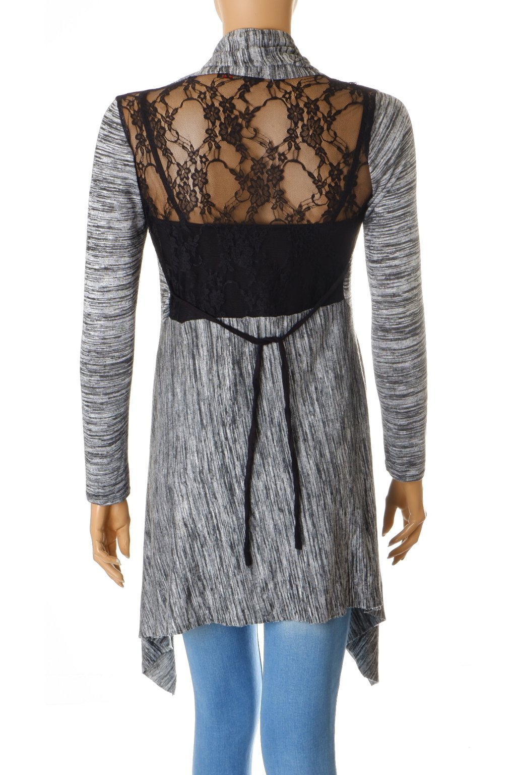 Svetr kardigan Babe šedá melanž na zádech krajka vel. S