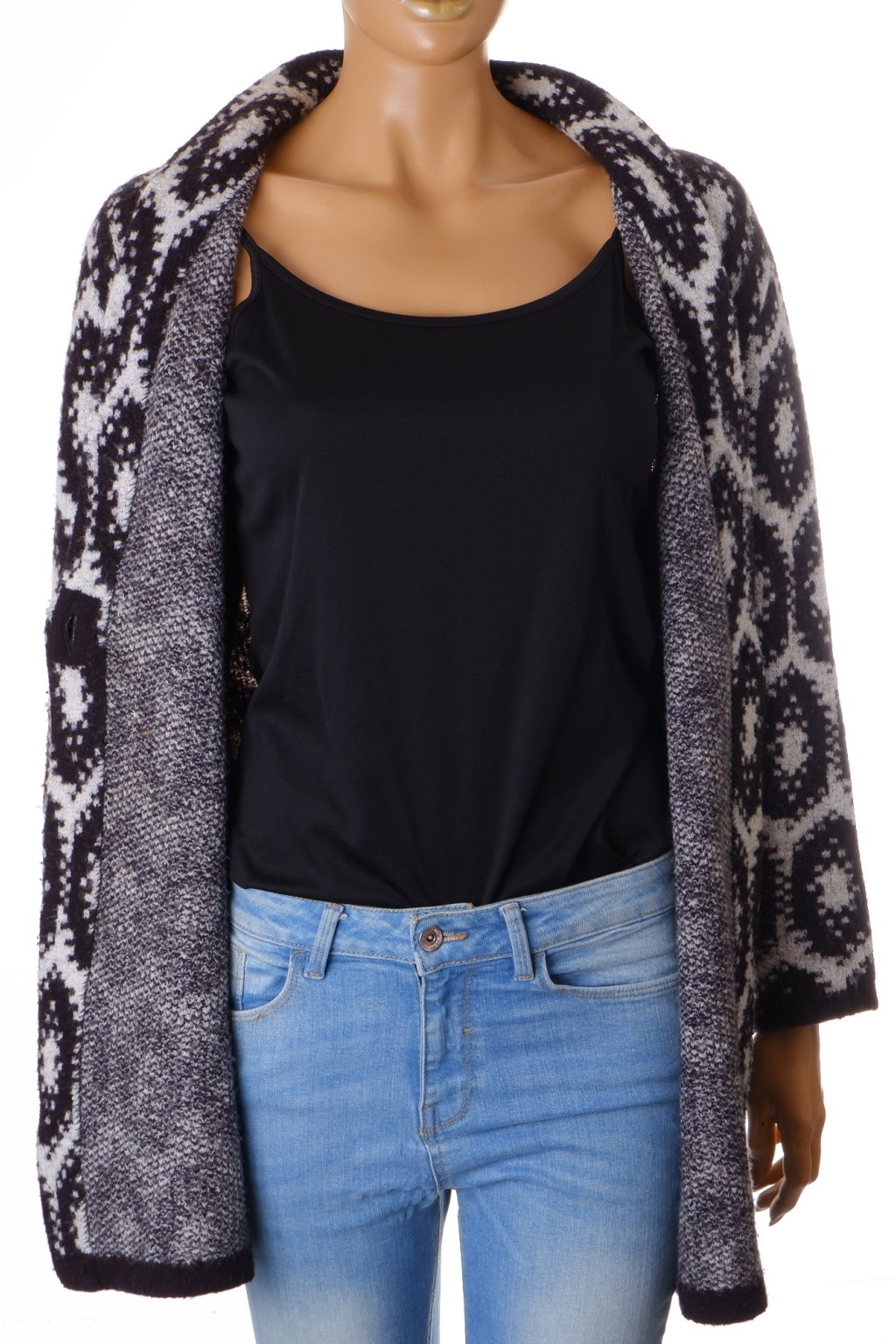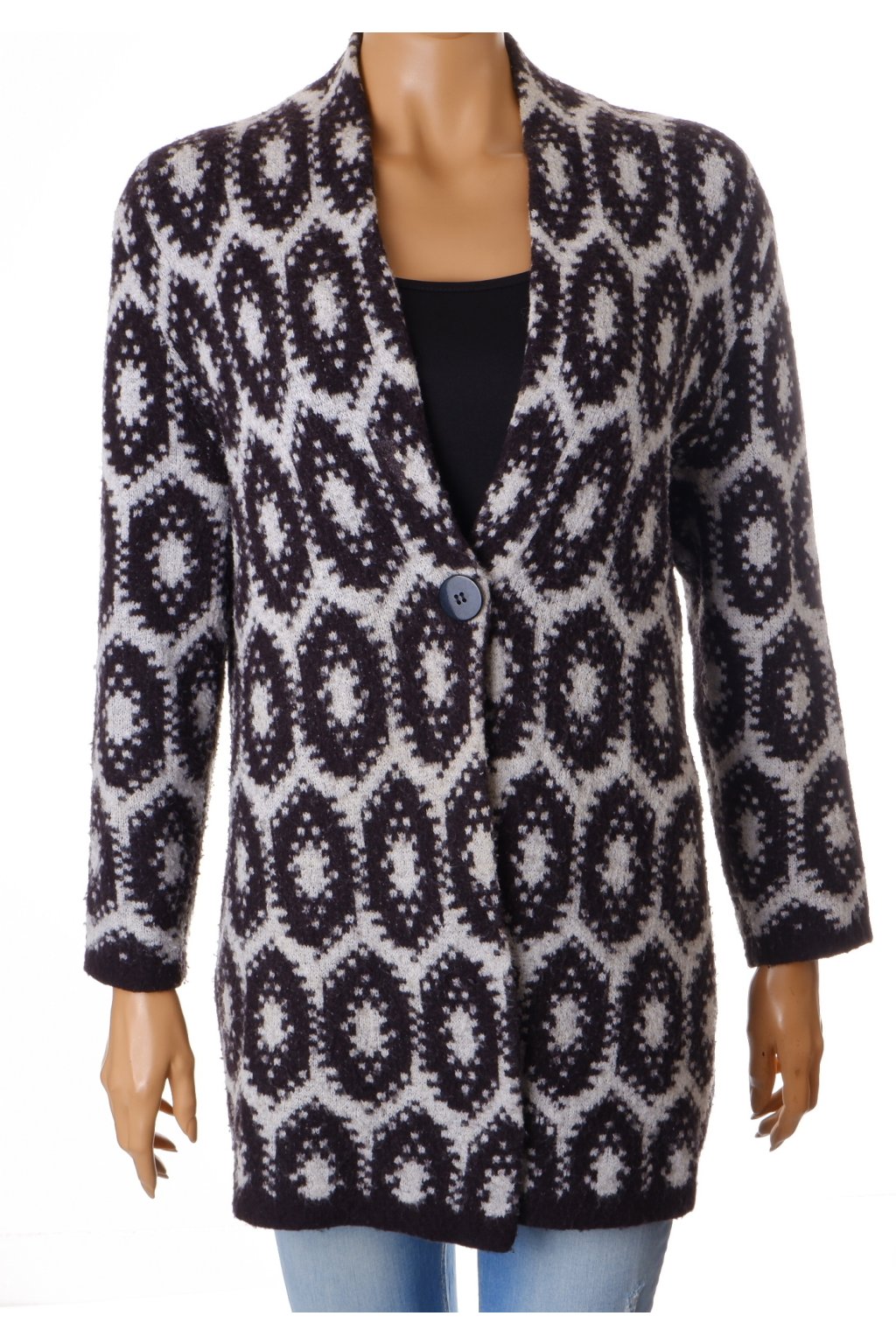 Svetr kardigan GerryWeber vel. L/XL černo-bílý 30% vlna vada