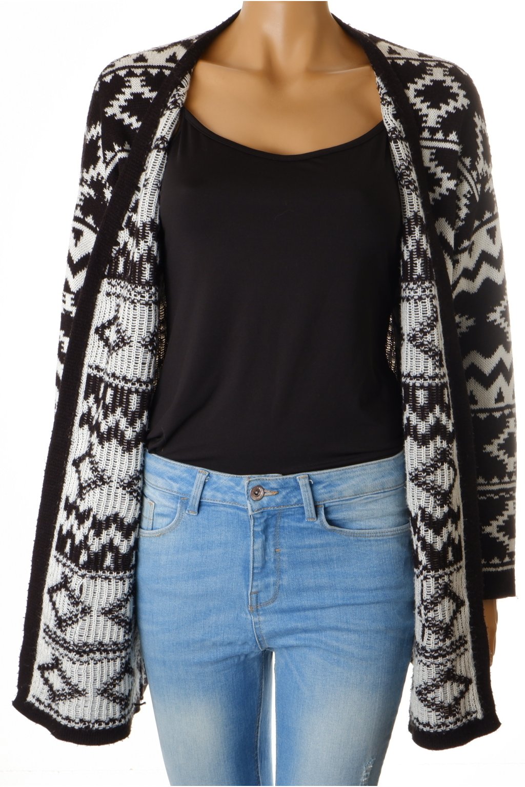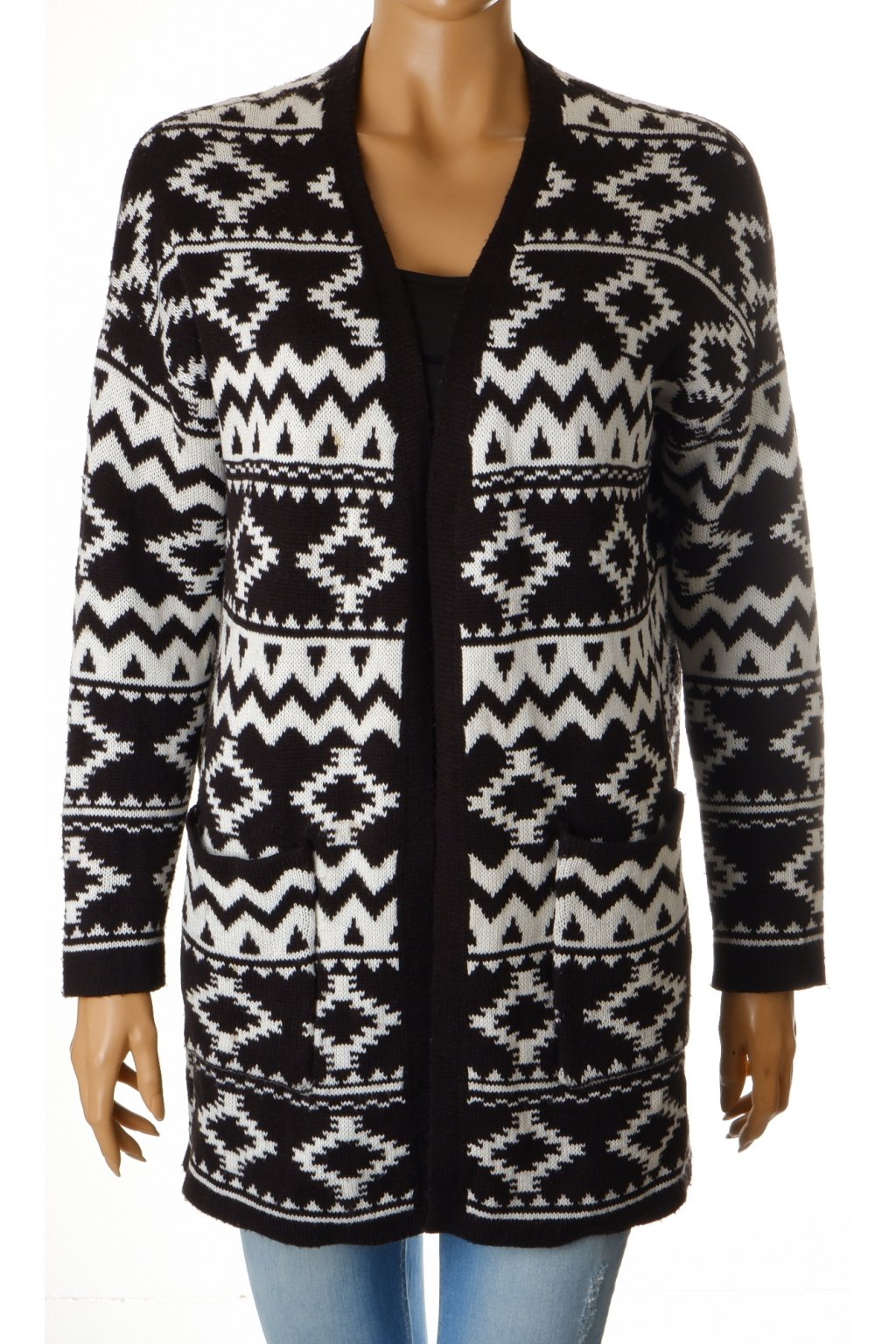 Svetr pletený kardigan Terranova vel. M černo-bílý