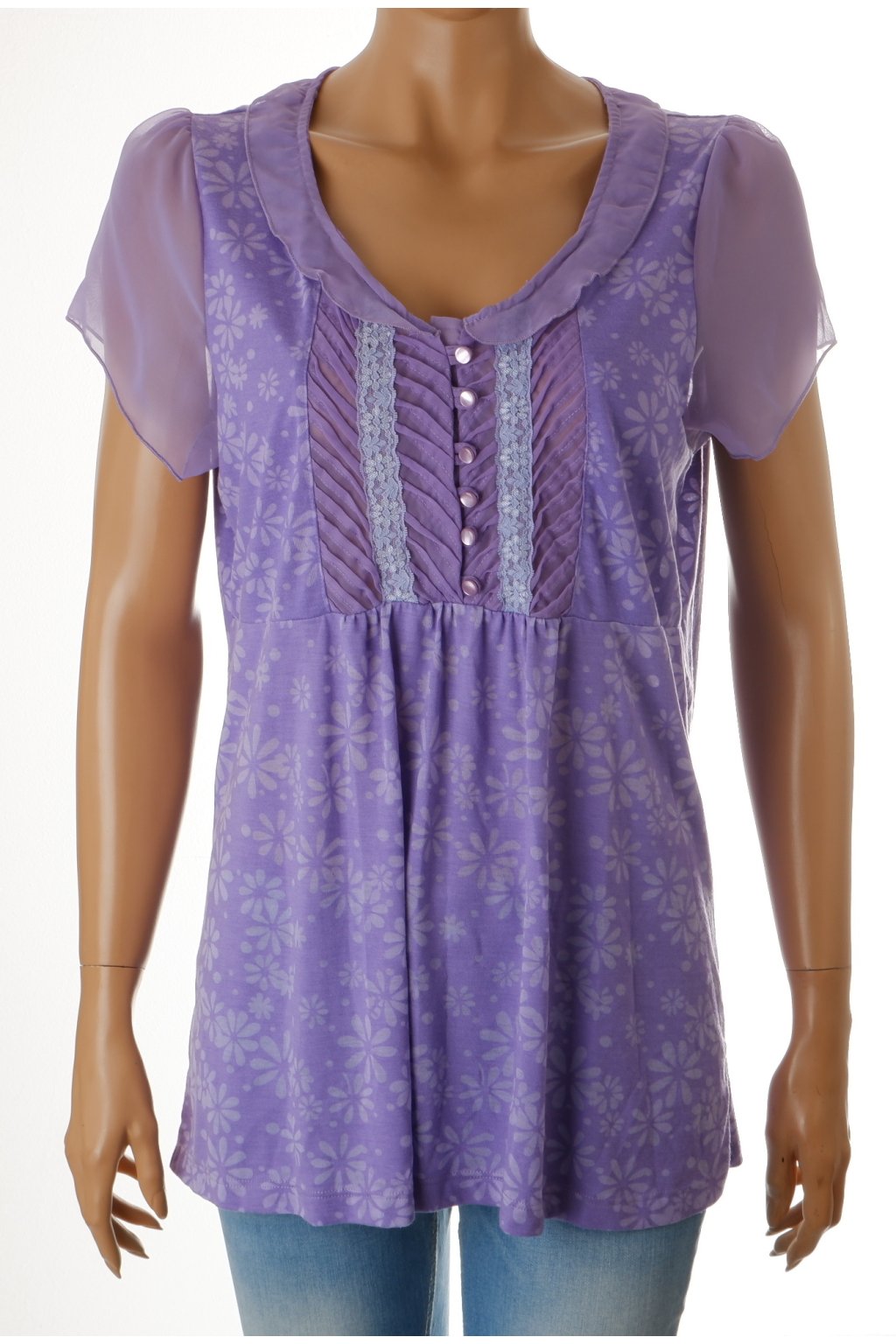 Tričko Evans fialové s květy a volánkem vel. 48 / uk 20 / L